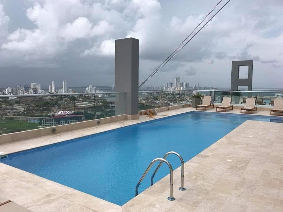 Se arrienda hermoso apartamento en Cartagena – El Cabrero, 96 M2, vista al mar , balcón, sala, comedor, cocina, 3 baños, área de labores, 2 alcobas, 1 parqueadero, dos piscinas en el último piso del edificio, salón social, salón de juegos y gimnasio, se entrega con aires acondicionados en las habitaciones y en la sala – comedor.