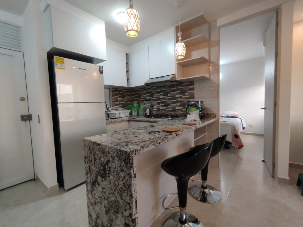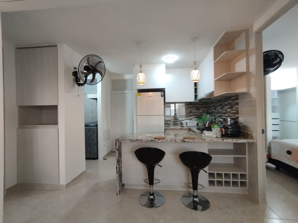 Apartamento amoblado en arriendo, Remodelado, con Parqueadero, Ubicado en la zona norte de la ciudad de Cartagena, en conjunto residencial cerca a centro comercial Ramblas, playas de Manzanillo, proyecto con torres de 4 pisos, salón social para eventos, zonas verdes, zona de juegos infantiles, vigilancia privada, parqueaderos, sistema cerrado TV; El apartamento consta de balcón con vista externa al lago, sala – comedor con excelente iluminación natural, cocina integral abierta, 2 habitaciones, 2 baños y excelentes acabados, Sector exclusivo de la ciudad, cercano a prestigiosa zona comercial, con droguerías, locales de moda, a pocos minutos de playas, aeropuerto y centro histórico de la ciudad.