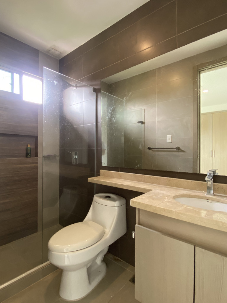 Apartamento fresco – acogedor – para estrenar – estudio – cocina integral – balcón – cada alcoba con baño y un baño social – alcoba de servicio – baño de servicio – cuenta con deposito – garaje – edificio con teatrino – planta electrica – transporte publico cercano – comodas vias de acceso – parques cercanos.