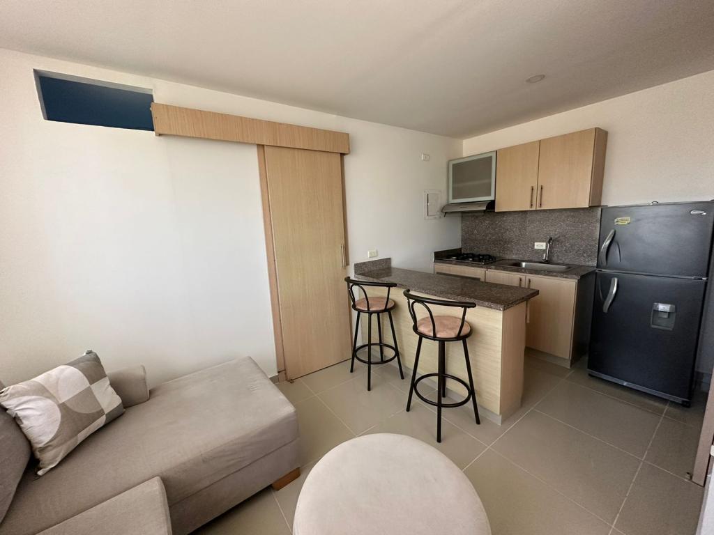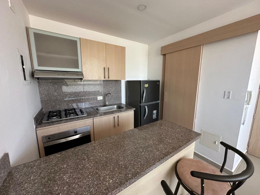 Apartamento amoblado en arriendo o venta, ubicado en el barrio Ciudad jardín al norte de la Ciudad de Barranquilla, cerca de grandes parques y zonas verdes, centros comerciales, colegios, universidades con facilidad de transporte. El edificio cuenta con 8 pisos y el apartamento se encuentra en el 2do piso del lado sombra, cuenta con 38mt2, excelente distribución, sala comedor, 1 alcoba con closet, baño auxiliar, cocina integral, área de labores y 1 parqueadero privado, piscinas, zona bbq, parqueadero de visitantes.