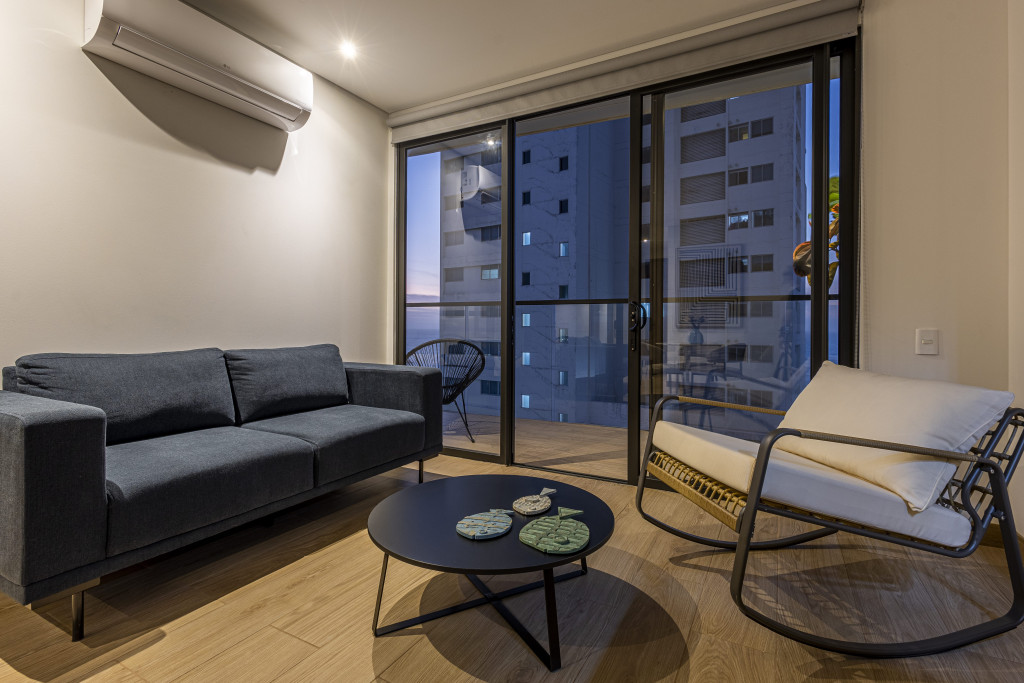 Vive el lujo y la comodidad en este exclusivo apartamento de 64.20 m², con 2 habitaciones y 2 baños, ubicado en una zona residencial de alta demanda y diseñado para quienes buscan estilo, confort y una excelente inversión; el inmueble cuenta con aire acondicionado, balcón con vista exterior, cocina integral y sala-comedor completamente amoblados, además de acceso a amenidades premium como piscina tipo infinity con vista panorámica a la ciudad y al mar, gimnasio, vigilancia privada 24/7 y planta eléctrica, todo con un diseño moderno y acabados de alta calidad que hacen de este apartamento el lugar ideal para vivir o invertir.
