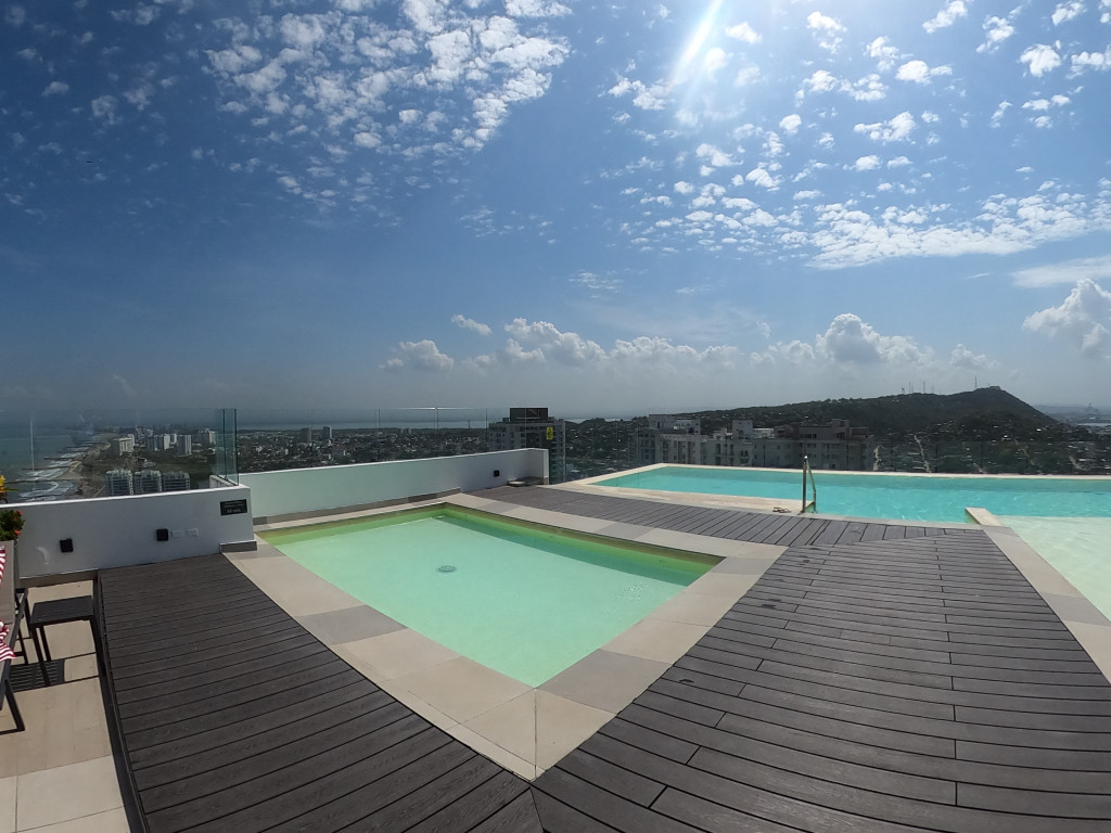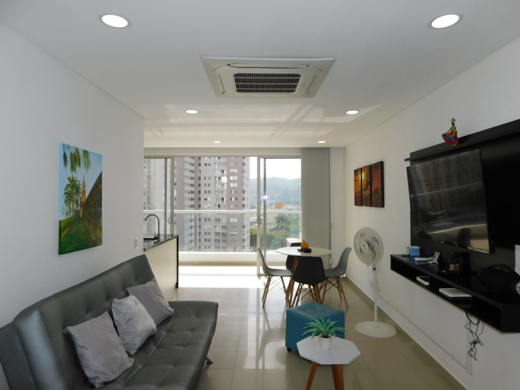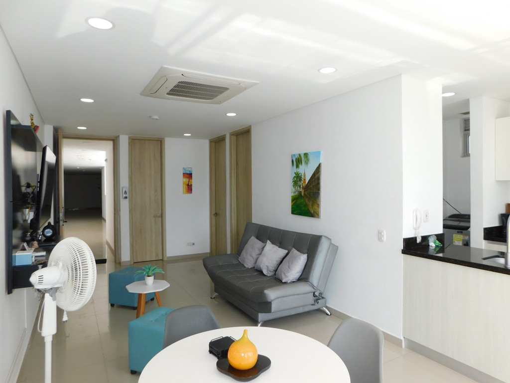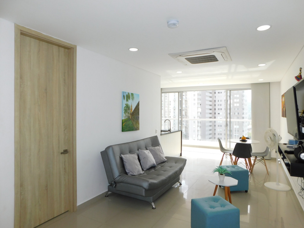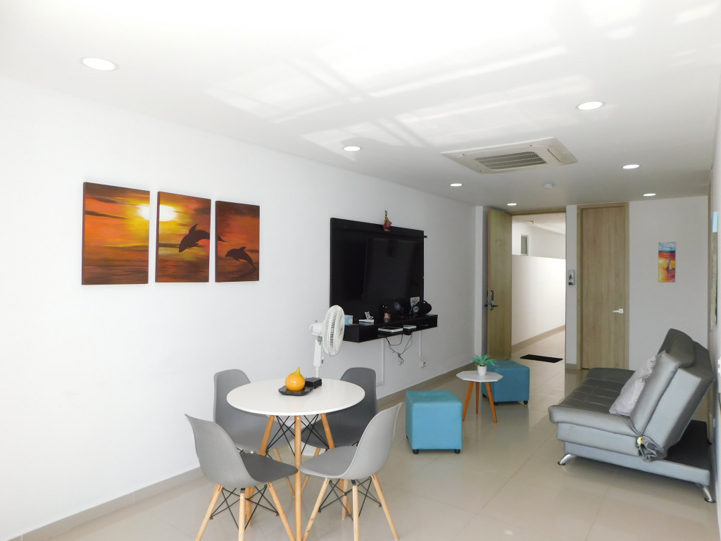 Apartamento amoblado para arriendo – venta, ubicado en el barrio Marbella de Cartagena; sector de alta demanda hotelera; ideal para inversionistas, lo puedes promocionar por Airbnb, booking y demás portales de renta turística (actualmente cuenta con reservas activas) en venta; en un edificio de 26 pisos con 3 ascensores, multiples piscinas para adultos y niños, gimnasio dotado, cinema, jacuzzi, sauna, baño turco, zona BBQ, solarium, salón social para eventos, gabinete de incendio, sensor de movimientos, alarmas, parqueadero cubierto, vigilancia las 24/7, circuito cerrado de TV, planta electrica; el apto consta de amplio balcón, 2 habitaciones, 2 baños, sala – comedor, cocina integral abierta, zona de labores, aire acondicionado, lavadora – secadora, mobiliario moderno y excelentes acabados; cerca a droguerías, almacenes de cadena, a pocos minutos del centro histórico y turístico de la ciudad, además del aeropuerto, cómodas vías de acceso, transporte publico cercano; ARRIENDO POR MESES