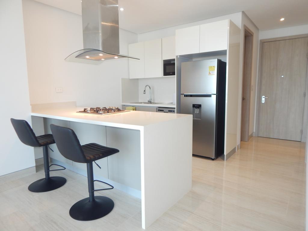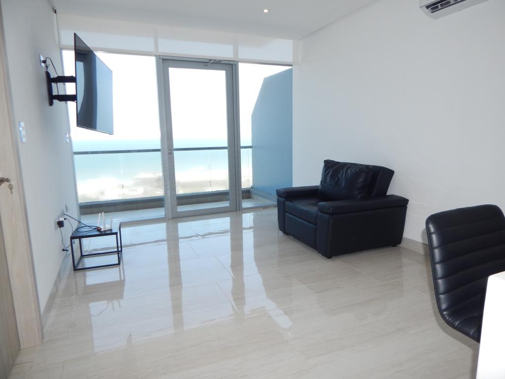 Se vende/arrienda apartamento ubicado en Puerto Colombia, en el sector de punta roca, en edificio con vigilancia privada, y zonas exclusivas de entretenimiento, el edificio cuenta con 9 pisos y el apartamento se encuentra en piso 6 con un área de 71.94 mt2, cuenta con 1 habitación, 2 baños, sala-comedor, cocina abierta integral, 1 parqueadero y un depósito asignado, este apartamento posee buena distribución en sus áreas con buenos y modernos acabados, es fresco y acogedor, su entorno es residencial con cómodas vías de acceso, sobre el sector tiene playas cercanas.