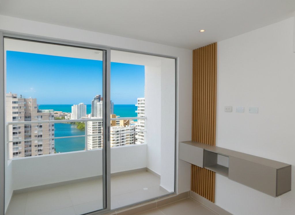Apartamento para estrenar en arriendo – Venta, ubicado en el barrio Torices – Cartagena; disfruta de esta acogedora propiedad, donde puedes vivr en un espacio tranquilo y seguro; en edificio de 33 pisos, consta de Zonas sociales como piscinas para adultos y niños, salones sociales para eventos, gimnasio, zonas de juegos infantiles, mirador, coworking, rooftop, vigilancia las 24/7, circuito cerrado de TV, gabinete de incendio, parqueadero comunal; el apartamento consta de balcón con excelente vista al Mar Caribe, centro historico, excelentes y modernos acabados, sala – comedor, 3 habitaciones, 2 baños, cocina integral tipo americana abierta, zona de labores; a pocos pasos de la playas turísticas de Marbella, droguerías, almacenes de cadena, hoteles, instituciones educativas, a pocos minutos del centro histórico y turístico de la ciudad, además del aeropuerto internacional Rafael Nuñez, cómodas vías de acceso, transporte público cercano.