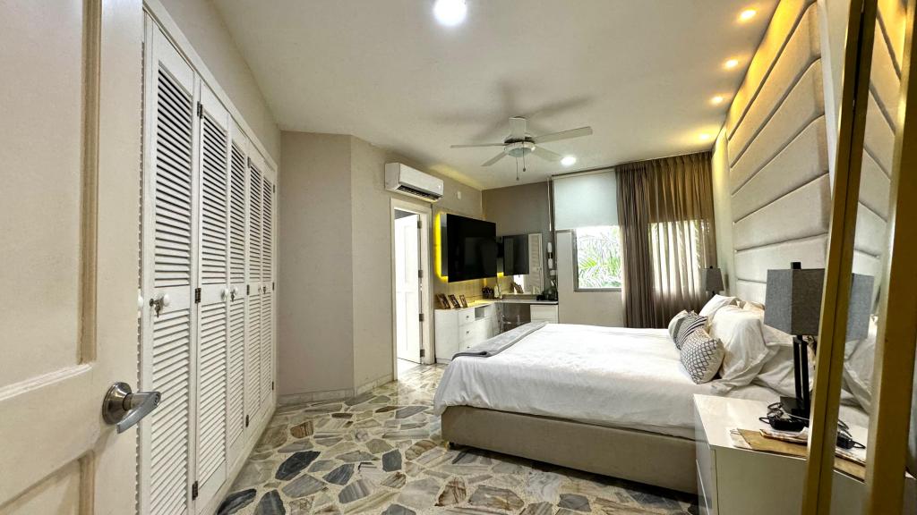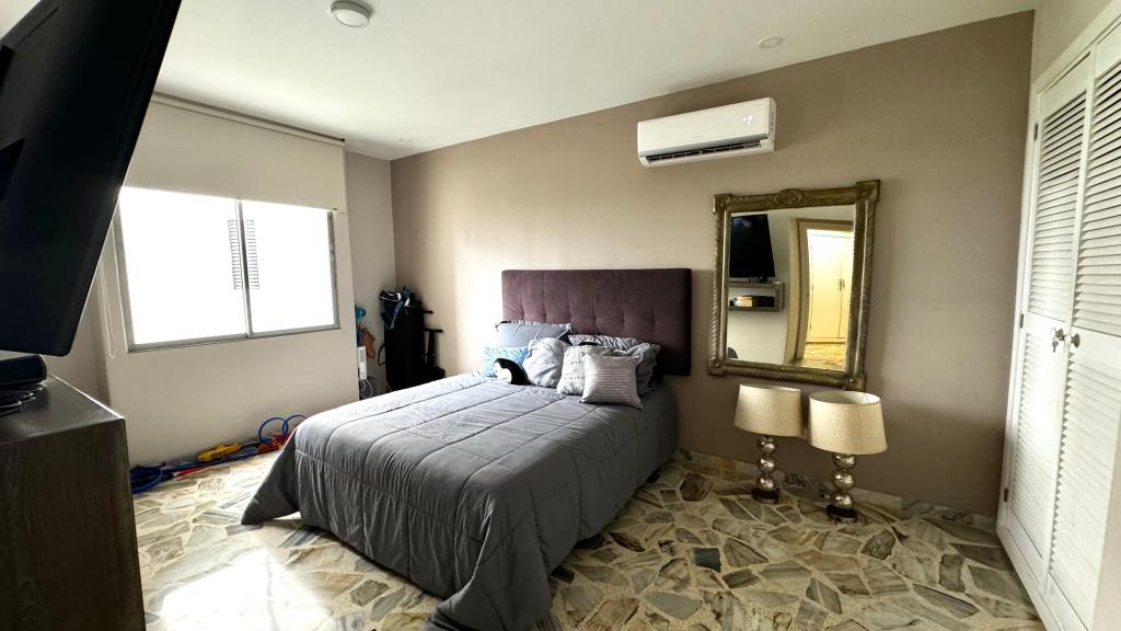 Apartamento para venta, ubicado en bocagrande; a pocos metros de la playa y la bahía, cerca a reconocidos centros comerciales, salas de cine, restaurantes tradicionales y de comidas típicas, boutiques, droguerías, iglesia, bombas de gasolina, instituciones financieras y medicas; el edificio consta de salón social para eventos, parqueadero cubierto, vigilancia las 24/7, circuito cerrado de TV, lobby, cómodas vías de acceso, transporte publico cercano; el apto consta de balcón con vista externa, 3 habitaciones,3 baños, sala – comedor, cocina integral cerrada, zona de labores, baño social, alcoba y baño de servicio.
