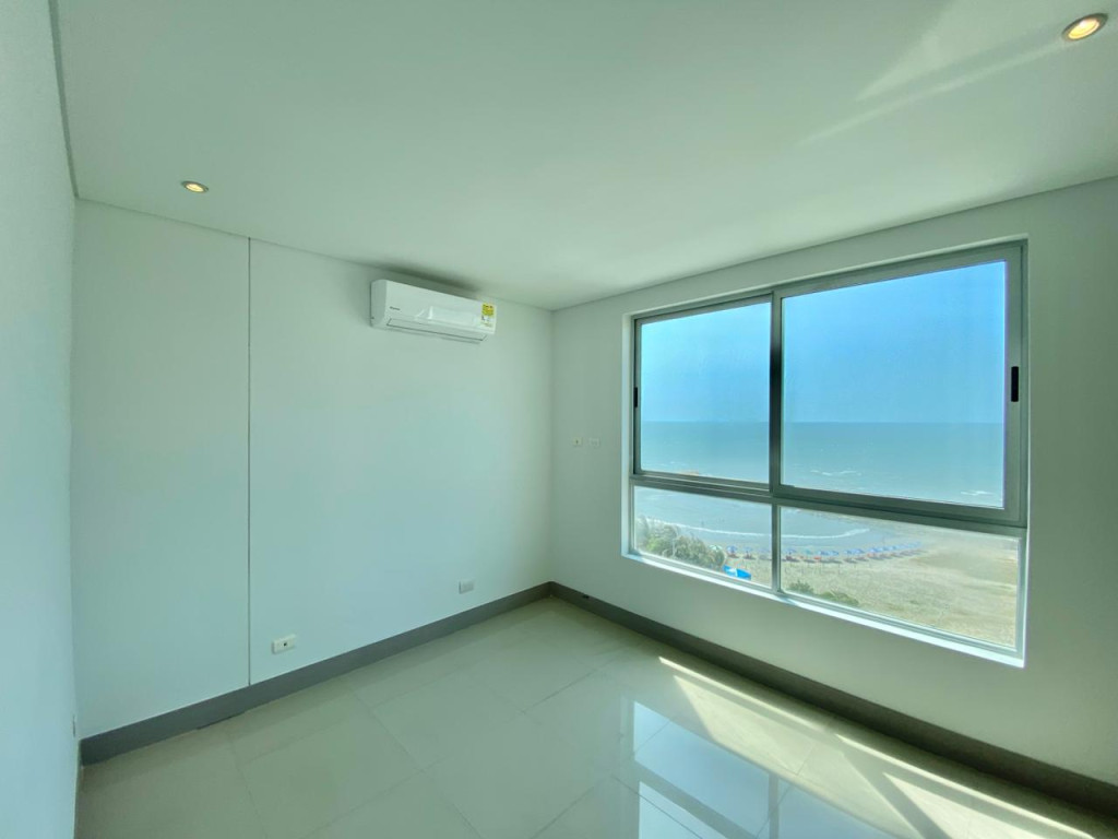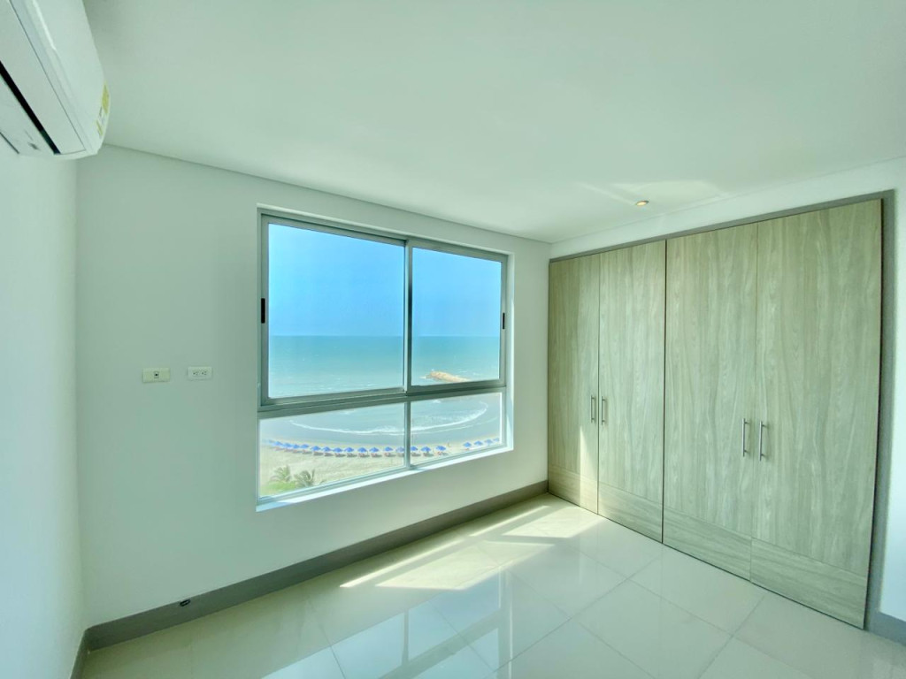 Se arrienda hermoso apartamento en Cartagena – El Cabrero, 96 M2, vista al mar , balcón, sala, comedor, cocina, 3 baños, área de labores, 2 alcobas, 1 parqueadero, dos piscinas en el último piso del edificio, salón social, salón de juegos y gimnasio, se entrega con aires acondicionados en las habitaciones y en la sala – comedor.