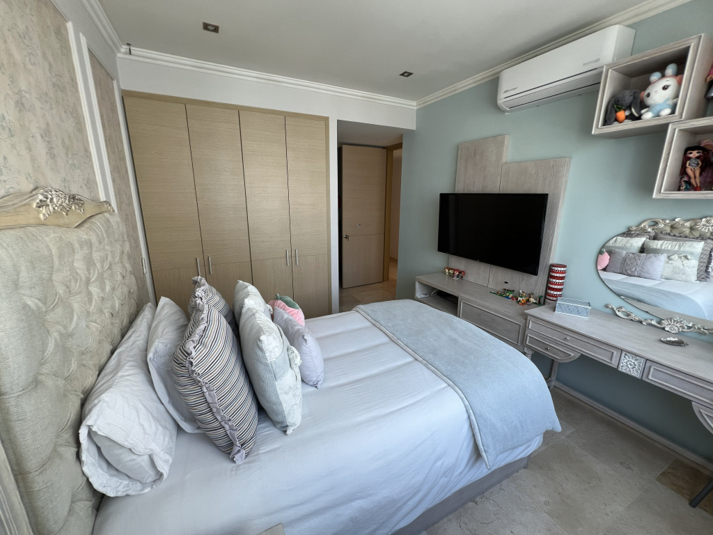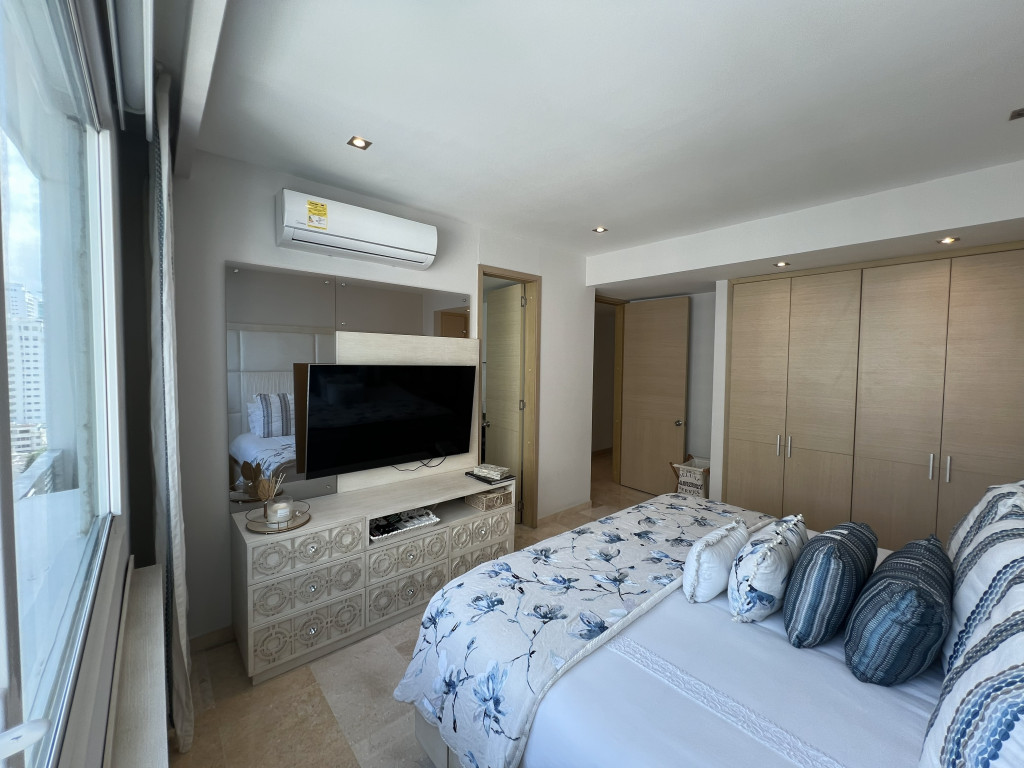 Apartamento en venta en la ciudad de Cartagena ubicado en el barrio Castillo Grande, en un edificio con vigilancia privada las 24 Horas y zonas sociales de entretenimiento, piscina, gimnasio, parque infantil, zona BBQ, salón de juegos, salón social, el edificio cuenta con 34 pisos y el apartamento se encuentra ubicado en el piso 11, con un área aproximada de 162 mt2 , distribuidos en 3 habitaciones, 2 baños mas baño social, sala -comedor, cocina integral, zona de labores y 1 parqueadero asignado, lado sombra, buena distribución en sus áreas con buenos y modernos acabados, es fresco y acogedor, su entorno es tranquilo, residencial con cómodas vías de acceso y facilidad al transporte público cercano.