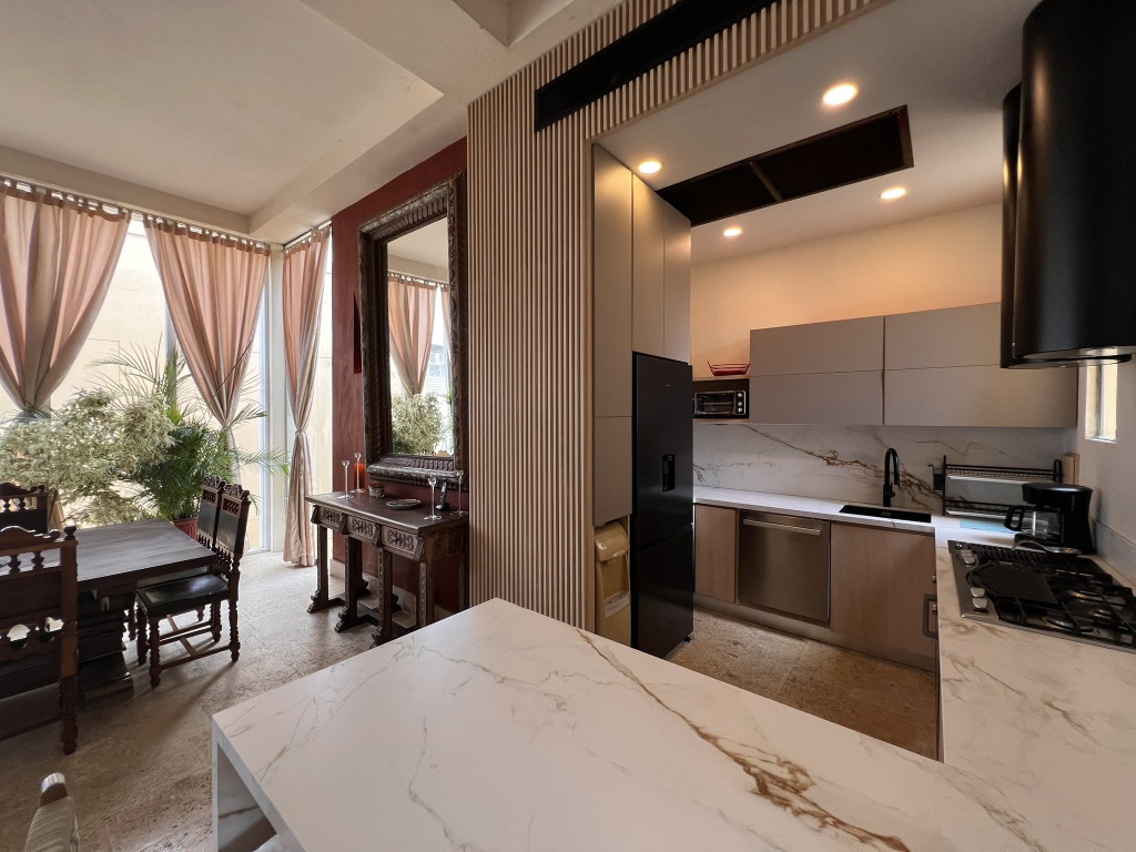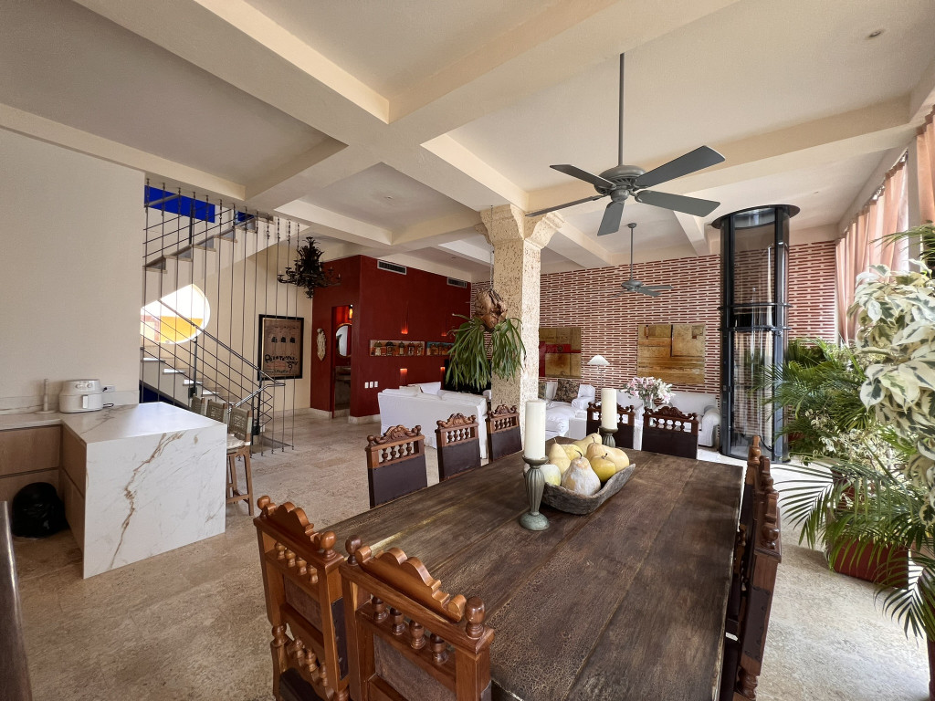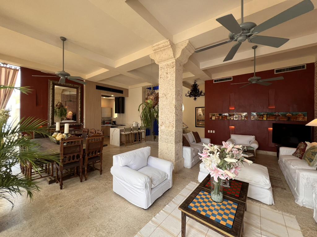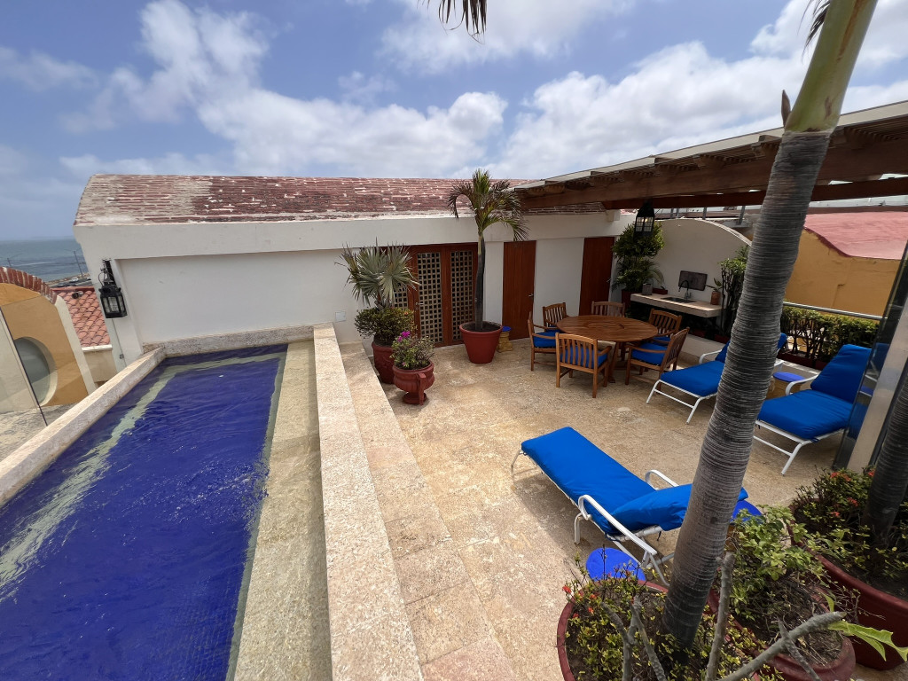Exclusivo apartamento dúplex en la ciudad de Cartagena sector Centro Histórico, en un edificio con vigilancia privada 24 Horas y zonas sociales de entretenimiento piscina. El apartamento cuenta con un área construida aproximada de 227.15 y un area lote aproximada de 293.51 mt2, distribuidos en 3 habitaciones, 2 baños mas baño social, sala, comedor, cocina semi integral, zona de labores, adicionalmente el apartamento cuenta con piscina privada y 2 parqueaderos asignados, lado sombra, buena distribución en sus áreas con buenos y modernos acabados, es fresco y acogedor, su entorno es tranquilo, residencial con cómodas vías de acceso y facilidad al transporte público cercano.