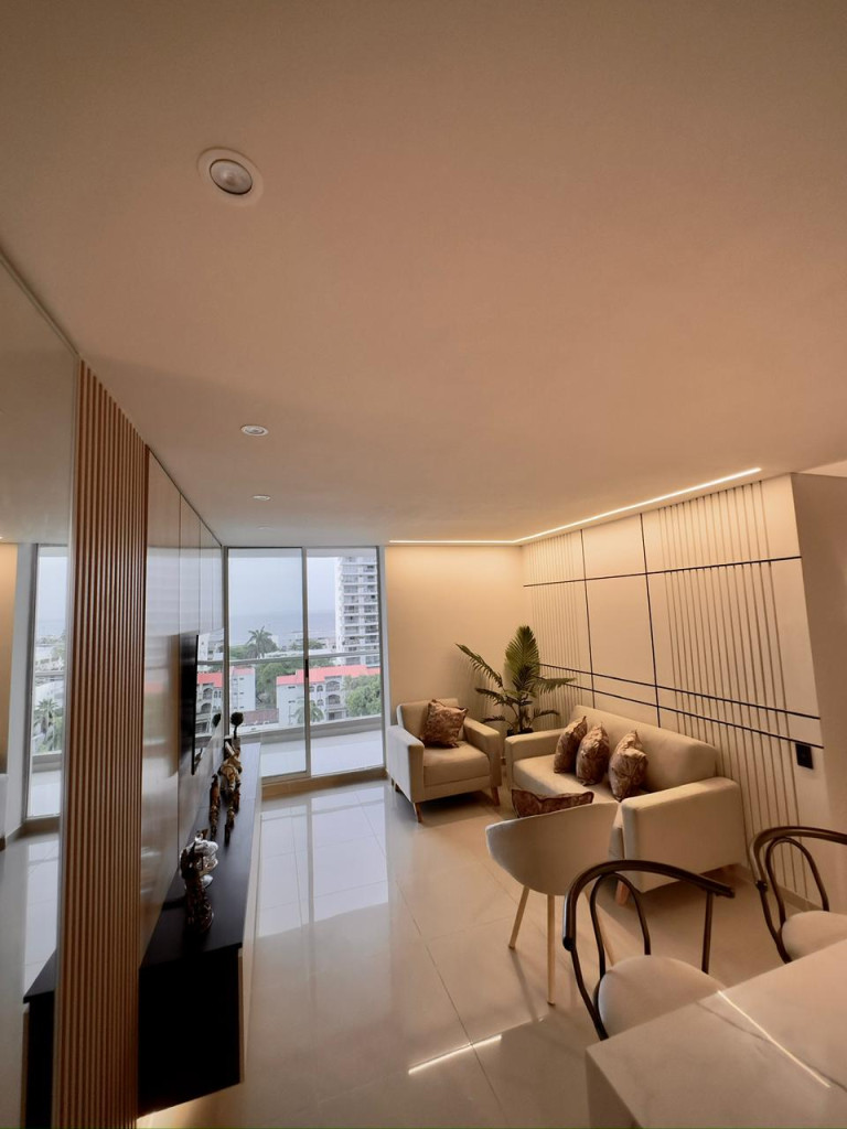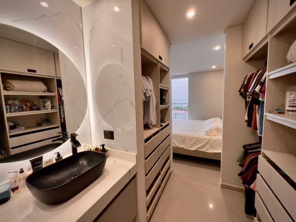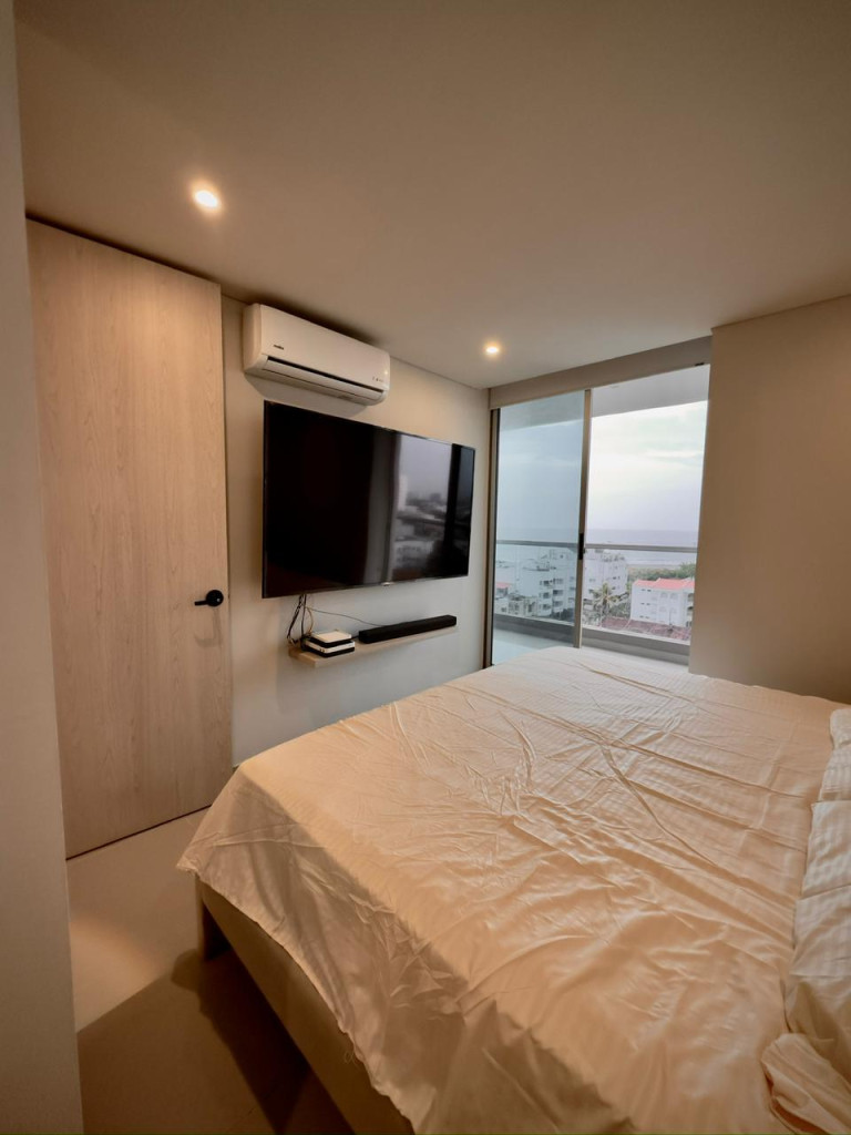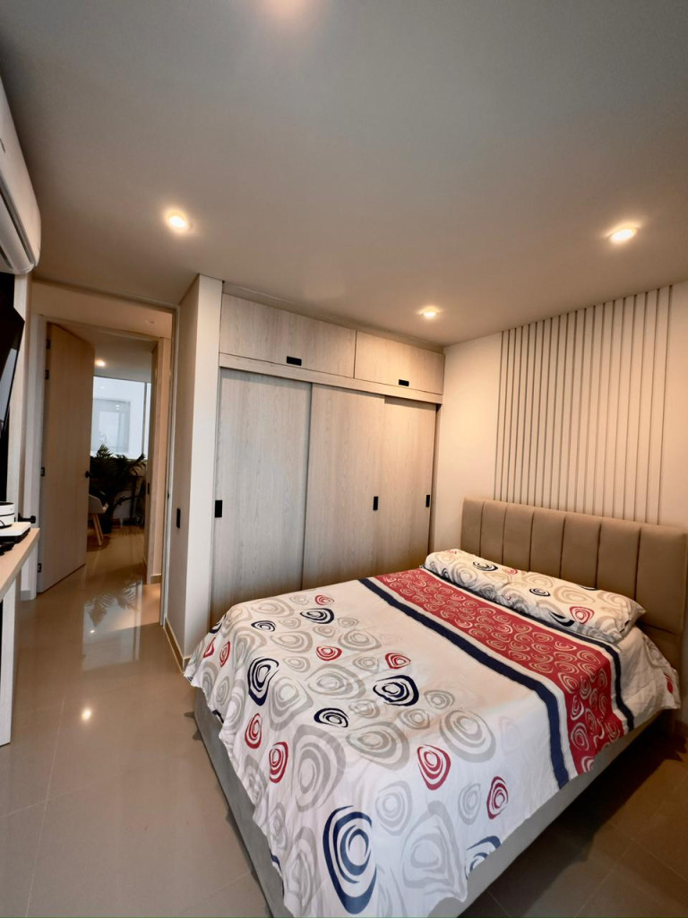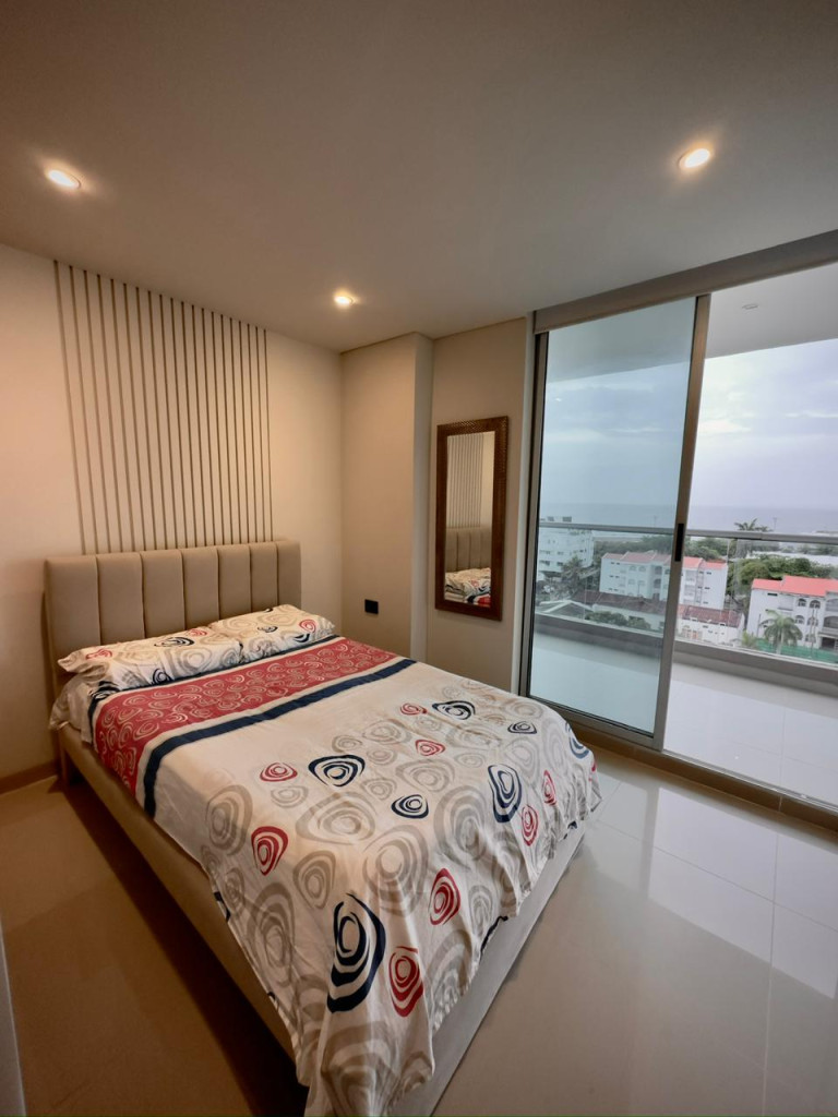 Apartamento para venta, ubicado en el barrio Crespo de Cartagena; encuentra tranquilidad y un agradable ambiente familiar en sector exclusivo de la ciudad, pensando en el bienestar de los tuyos, en edificio de 14 pisos, cuenta con ascensor moderno, parqueadero cubierto, piscina, gimnasio, salón social para eventos, zona de juegos infantiles, vigilancia privada las 24/7, sistema cerrado de TV; este apartamento totalmente remodelado consta de amplio balcón, 3 habitaciones, 3 baños, vestier, sala – comedor, cocina integral abierta, zona de labores; a pocos metros de senderos peatonales, zonas verdes, parques, canchas deportivas, a pocos pasos del aeropuerto, almacenes de cadena, restaurantes, panaderías, tiendas cabecera de barrio, iglesia, transporte publico cercano, cómodas vías de acceso, a tan solo 5 minutos del centro histórico de la ciudad; la oportunidad ideal que estabas esperando.