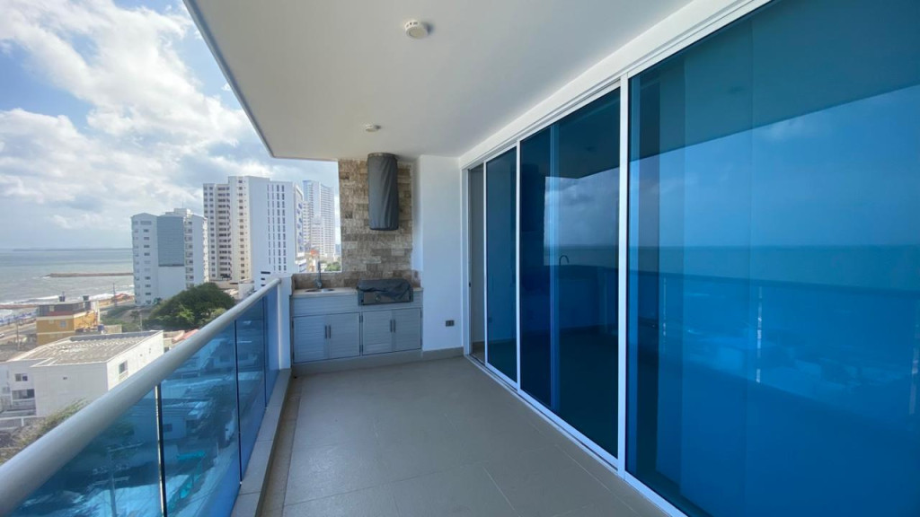 Apartamento en venta, ubicado en El Cabrero – Cartagena; el apartamento consta de 3 habitaciones, sala-comedor, aire acondicionado, 2 baños, Vestier, balcón con vista al mar y zona BBQ, cocina integral, zona de labores cubierta, dos parqueaderos cubiertos. A pocos metros del centro histórico, playas de marbella, restaurantes, almacenes de cadena, centros comerciales, a pocos minutos del aeropuerto Rafael Núñez; El edificio consta de 2 piscinas (adultos y niños), gimnasio equipado, salón social para eventos, zona de BBQ, baño turco, sauna, 4 jacuzzis, zona de juegos infantiles, ascensores (inquilinos y de mascotas), parqueadero cubierto, vigilancia privada las 24/7, circuito cerrado de TV.