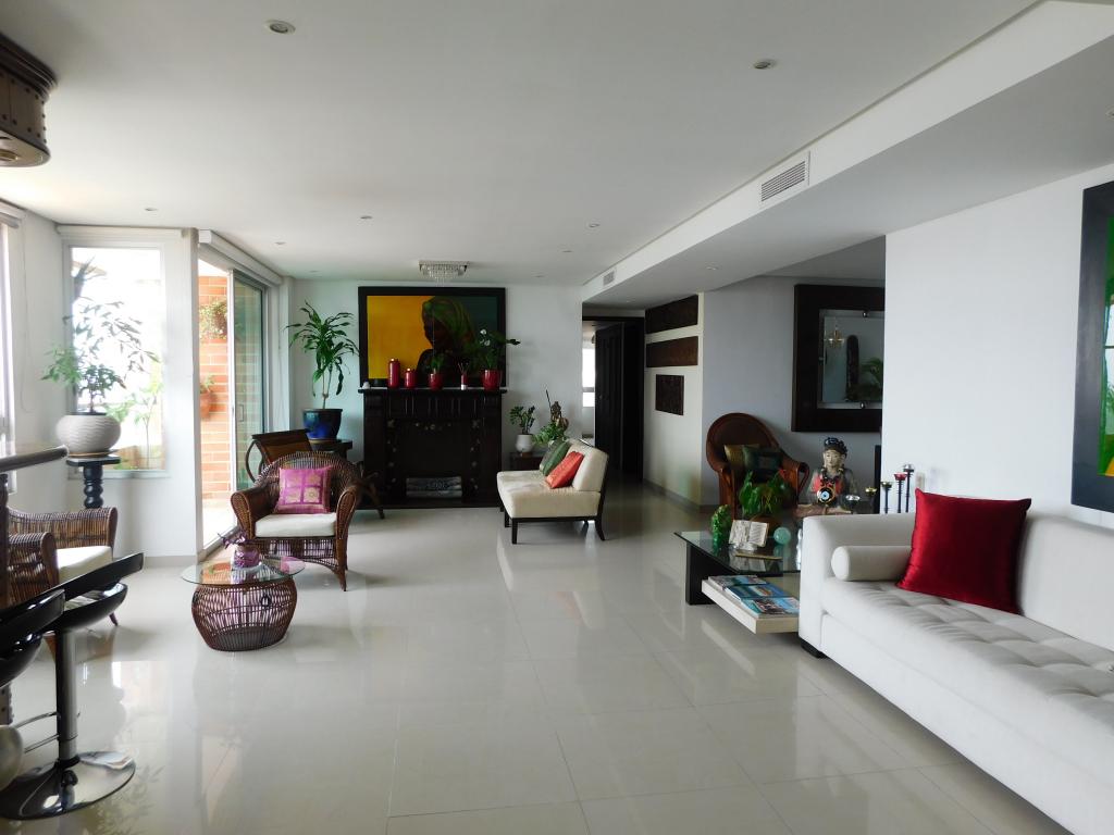 Apartamento amoblado en venta ubicado al norte de la ciudad en el sector de la castellana cerca del centro comercial buena vista, excelentes acabados, fresco y con muy buena vista, consta de 3 alcobas cada una con su baño privado y Vestier amplios espacios, estudio, baño social, balcón, 2 garajes separados, deposito, alcoba y baño para el servicio, sala, comedor, sala auxiliar, cocina cerrada, zona de labores, 1 mini bar, chimenea en la sala, el conjunto tiene una de las mejores zonas sociales del sector, con zonas verdes y recreativas, piscinas, salón social, terraza, bbq, gym, golfito, parque infantil, seguridad privada con cámaras.
