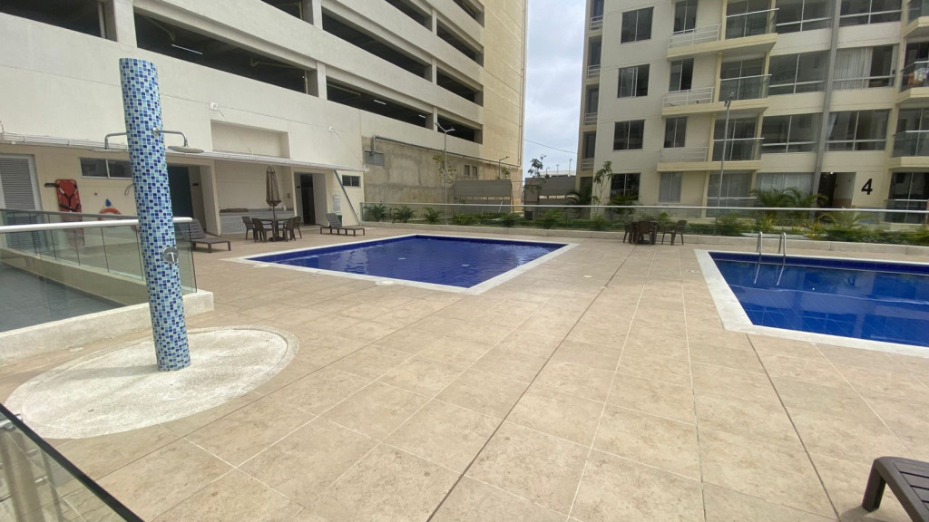 Apartamento en venta ubicado en el barrio Ternera de Cartagena; ubicado en edificio de 20 pisos, consta de piscinas para adultos y niños, salón de juegos, gimnasio dotado, zona de juegos infantiles, salón social para eventos, zona BBQ, parqueadero cubierto, vigilancia 24/7, circuito cerrado de TV, sala de juntas; El apartamento cuenta con balcón, vista interior, 3 habitaciones, 2 baños, sala-comedor, cocina integral, zona de labores; edificio ubicado excelente zona a pocos metros de reconocidos centro comerciales, almacenes de cadena, entidades bancarias, restaurantes de comidas rápidas y tradicionales, farmacias, entidades educativas.