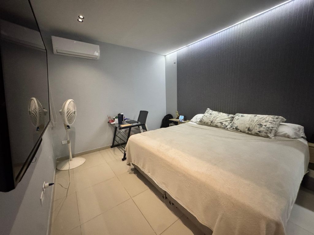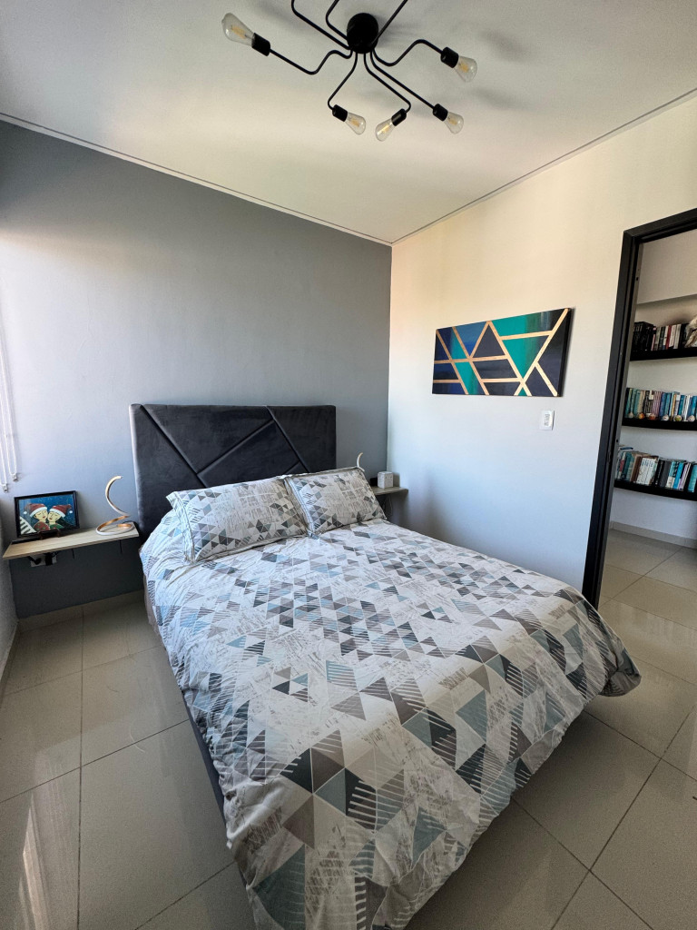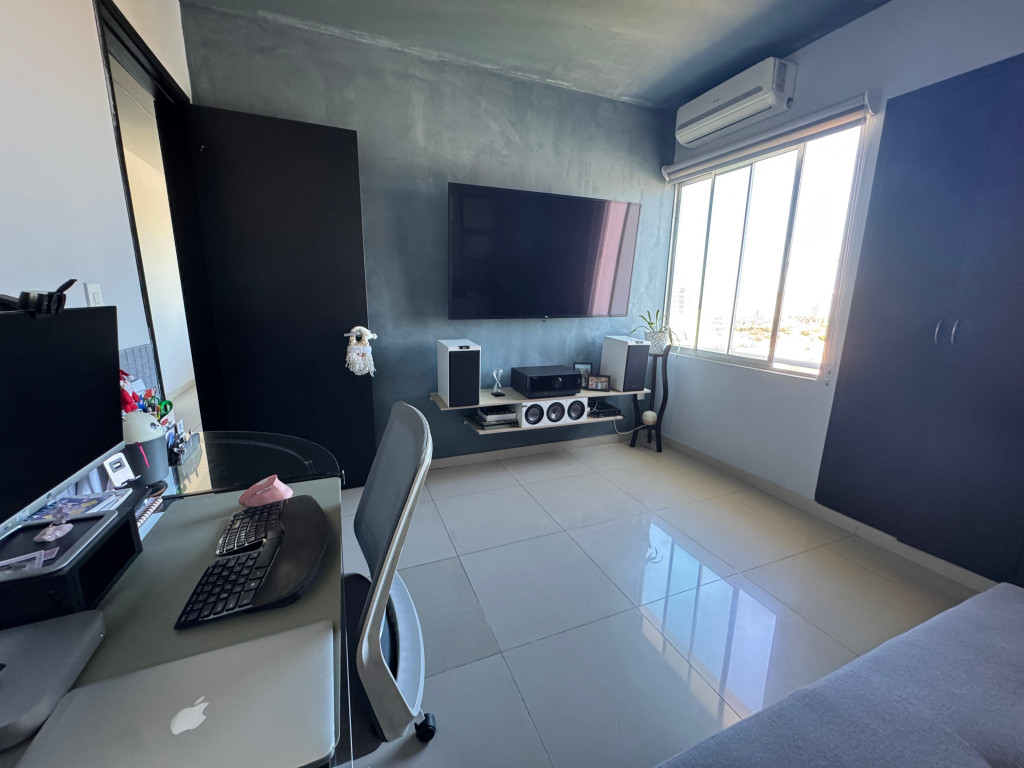 Apartamento en venta ubicado en el barrio Villa Santos, en un edificio con vigilancia privada las 24 horas y zonas sociales de entretenimiento. El edificio cuenta con 12 pisos y el apartamento se encuentra en el octavo piso con un área aproximada de 115 m², distribuidos en 3 habitaciones, 2 baños, cuarto de servicio con baño, cocina integral amplia, zona de labores y 1 parqueadero cubierto asignado frente al ascensor. El inmueble ofrece buena distribución en sus áreas, modernos acabados, es fresco, luminoso y acogedor. Además, cuenta con minisplits en las habitaciones y sala, sistema de automatización Crestron para luces y climatización, parlantes empotrados en varias zonas y calentador de agua a gas. El entorno es tranquilo y residencial, con cómodas vías de acceso y facilidad al transporte público cercano. En el sector se pueden encontrar parques, colegios, droguerías y centros comerciales.