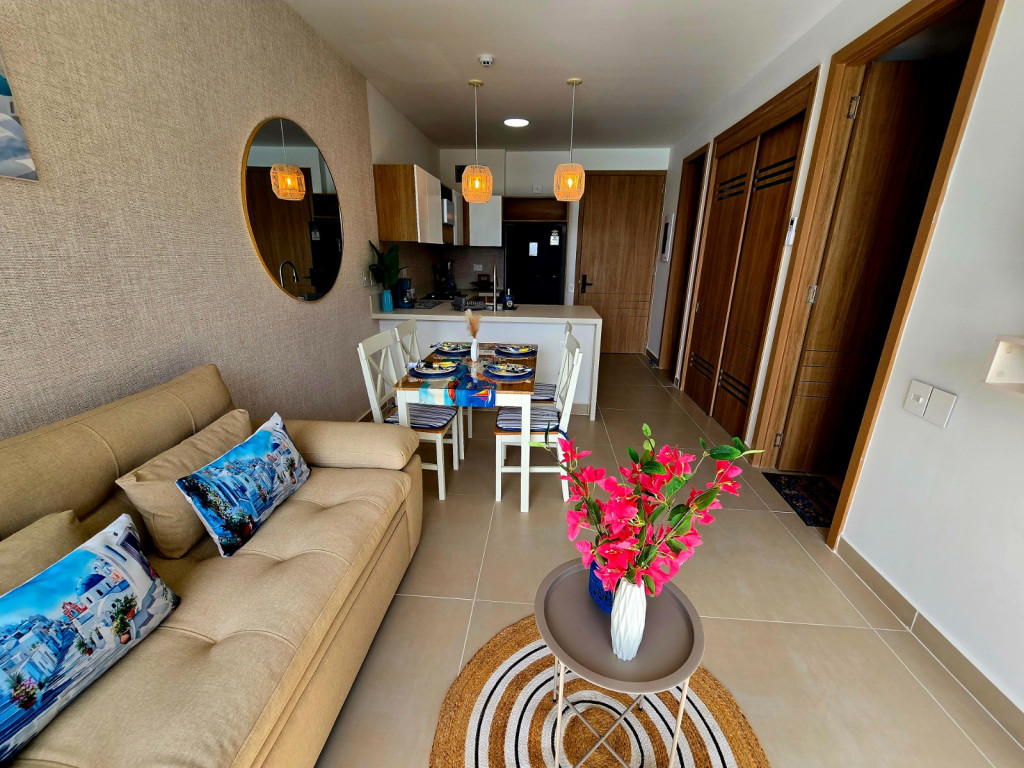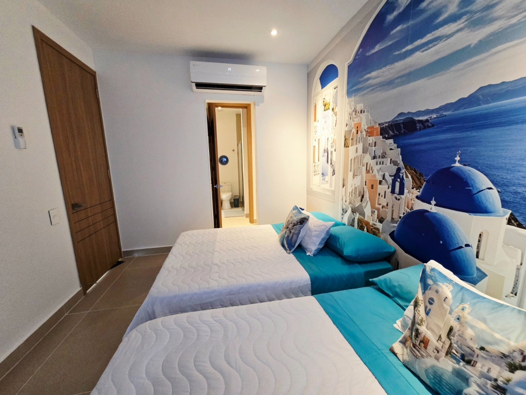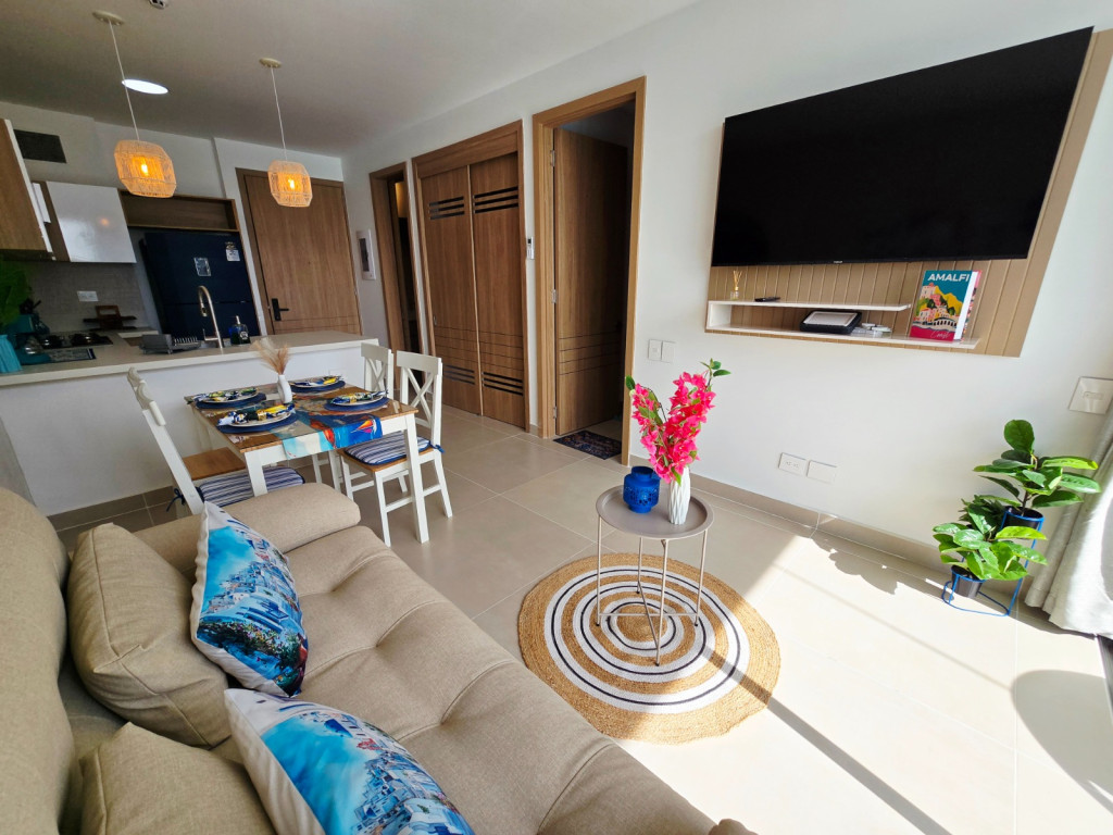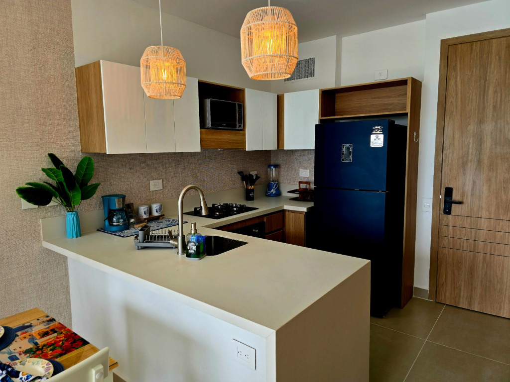 Apartamento amoblado para la venta, estilo resort, ubicado en la zona norte de la ciudad de Cartagena; sector exclusivo y de alta demanda hotelera; ideal para inversionistas, lo puedes promocionar por Airbnb, booking y demás portales de renta turística (actualmente cuenta con reservas existentes); en edificio de 5 pisos, consta de la playa artificial mas innovadora y novedosa del pais, salón social, coworking, kids club, tennis and squash club, jacuzzis, senderos del lago, gimnasio, spa, cine bajo estrellas, minigolf, zona BBQ, vigilancia privada, sistema de circuito cerrado de TV, ascensores, gabinete de incendios, sensor de movimiento, lobby; el apto consta de amplio balcon, 1 habitacion, 1 baño, sala – comedor, cocina integral moderna con barra americana, zona de labores, aire acondicionado, mobiliario moderno; a pocos metros del aeropuerto internacional Rafael Nuñez, minimercados, droguerías, restaurantes de comidas típicas y tradicionales en las Ramblas, cómodas vías de acceso.