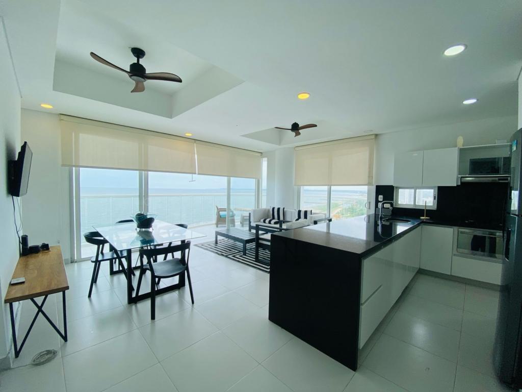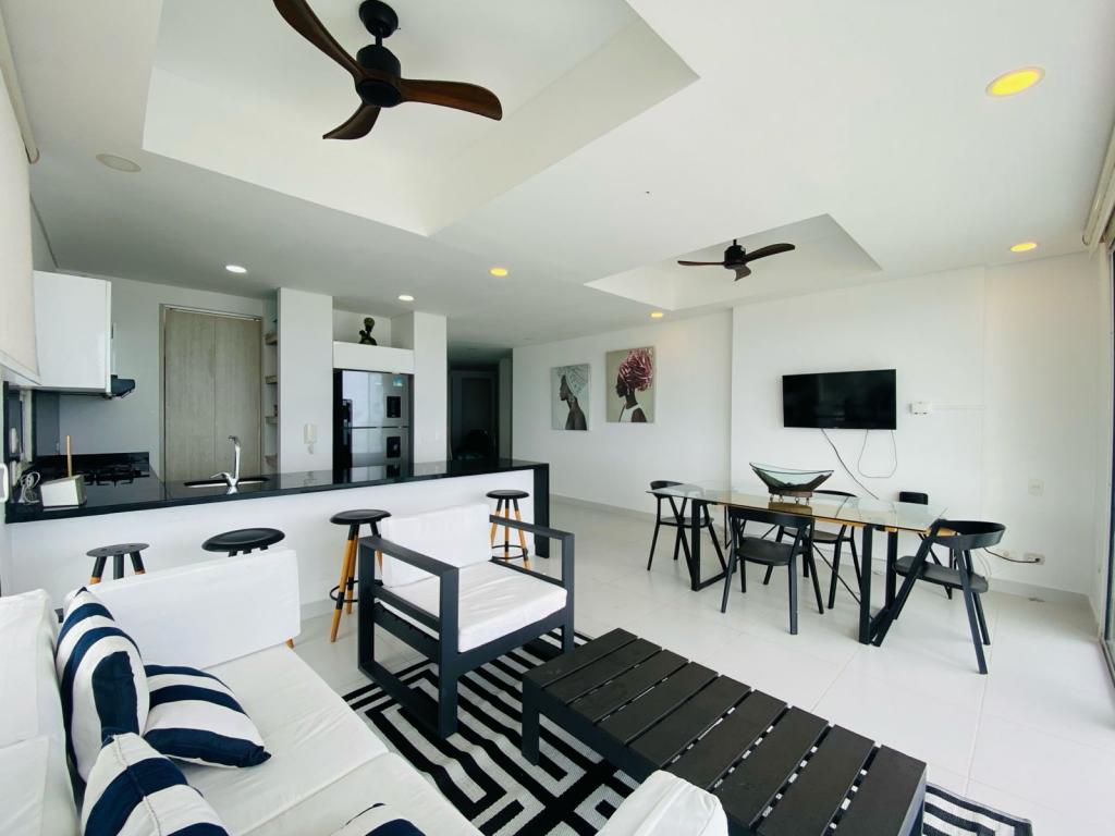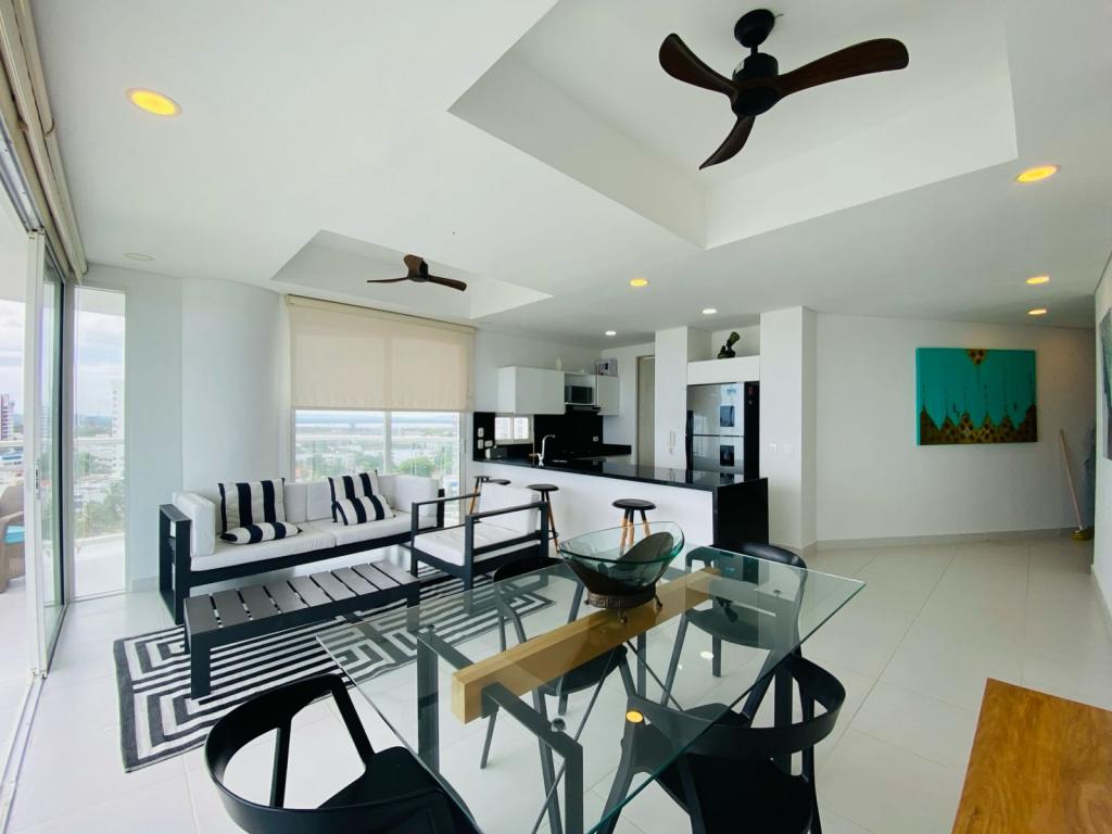 Apartamento para venta y arriendo amoblado , ubicado en Crespo – Cartagena; en optimas condiciones, encuentra tranquilidad y un agradable ambiente familiar en sector exclusivo de la ciudad, pensando en el bienestar de los tuyos, a pocos metros de senderos peatonales, zonas verdes, cómodas vías de acceso, a pocos pasos del aeropuerto, almacenes de cadena, restaurantes, panaderías, tiendas cabecera de barrio, iglesia, cómodas vías de acceso, transporte publico cercano; el edificio cuenta con ascensores modernos, parqueadero cubierto # 1104 segundo piso , piscina, gimnasio, salón social para eventos, zona de juegos infantiles, zona BBQ, vigilancia privada las 24/7, sistema cerrado de TV; el apto consta de balcón ,3 habitacion,3 baño, sala – comedor, cocina integral abierta, zona de labores.