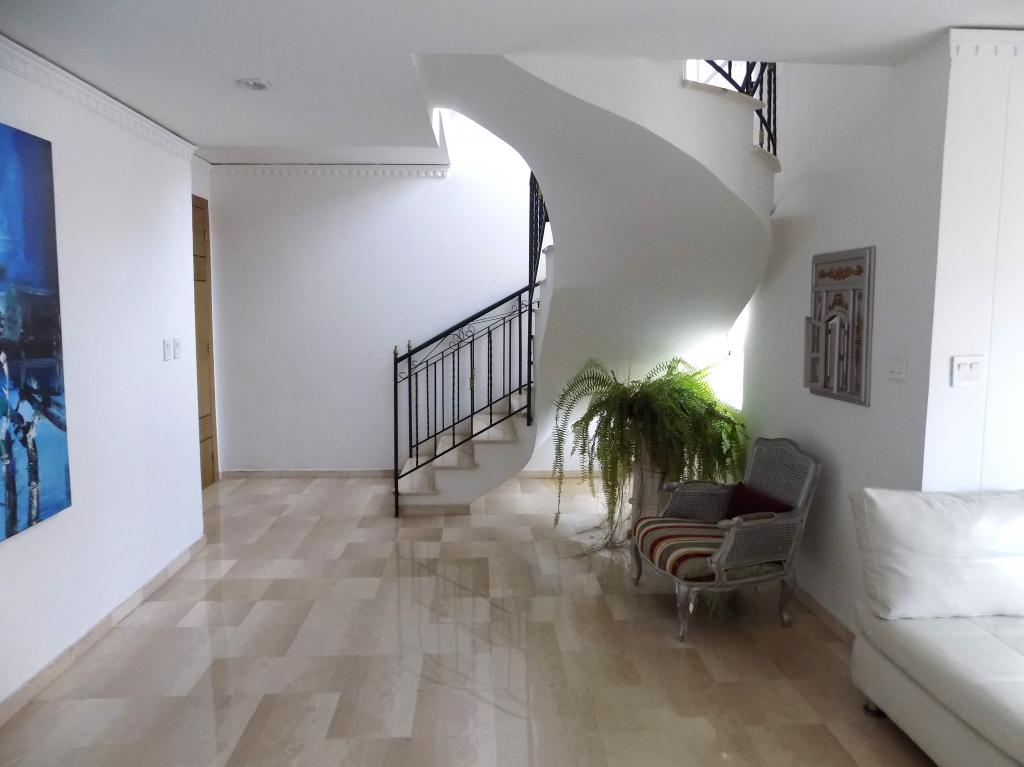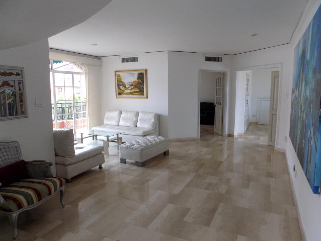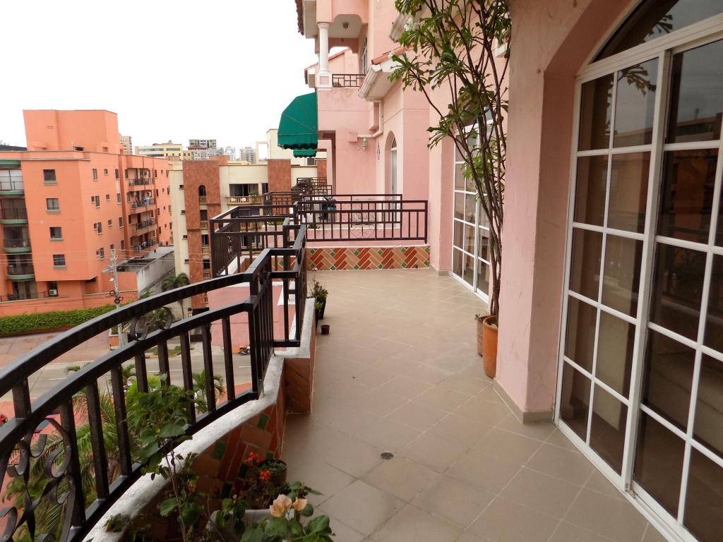 Apartamento dúplex tipo Pent house en arriendo amoblado, ubicado en el exclusivo sector de Altos de Riomar, al norte de la ciudad de Barranquilla, cerca del Centro Comercial VIVA, colegios, hoteles y grandes parques; el apto cuenta con grandes espacios, pisos de mármol, aire central y mini splits, área de recibo, sala, comedor, estudio, estar, 1 alcoba en 1er nivel y 3 en el 2do nivel, todas las alcobas con sus baños privados, amplios vestieres, balcones y amplias terrazas con excelentes y diferentes vistas, cocina integral, alcoba y baño para servicio, área de labores, 2 garajes privados, 1 depósito y acceso para el servicio. El conjunto tiene unas amplias y acogedoras zonas sociales y recreativas, con lobby, piscinas, cancha deportiva, gym, salón social, zonas verdes, terrazas, parque infantil, kiosco, bbq, sauna, ascensor y casa club billar.