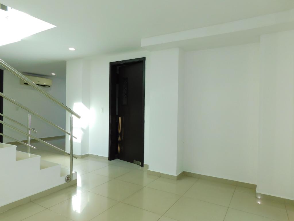 Apartamento de 2 niveles en arriendo, ubicada estratégicamente en el sector de Ciudad Jardín al norte de la Ciudad de Barranquilla, sector tranquilo, de fácil acceso y transporte. Cerca de la Universidad Metropolitana, parque sagrado corazón, colegios, iglesias y almacenes de cadena; la casa tiene 152 m2, con excelentes acabados. En el primer nivel cuenta con, sala comedor, baño social, patio, zona de labores labores y cocina integral con baño auxiliar, cuarto de servicio con baño, en el segundo nivel tiene 3 alcobas con amplios ventanales tipo mirador, closet, 1 Vestier, 1 de las alcobas con baño privado y hay 1 baño auxiliar, el apto cuenta con garaje. El conjunto, tiene vigilancia 24 horas, acogedoras zonas sociales, salón social, gym, parque infantil, zona de bbq y terraza social.