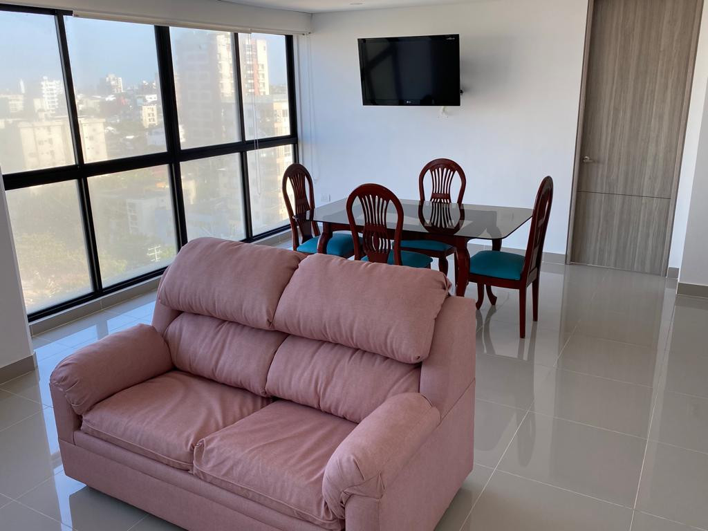 Hermoso apartamento amoblado en arriendo ubicado en el barrio la Campiña de la ciudad de barranquilla, cuenta con un área aproximada de 77mt2 distribuidos en 1 habitación con 1 baños, 1 baño social, cocina integral, área de labores, sala comedor, deposito, parqueadero privado; el edificio cuenta con piscina, jacuzzi, salón social, zona de BBQ, cerca al parque Venezuela, centros comerciales, universidades, colegios y supermercados.