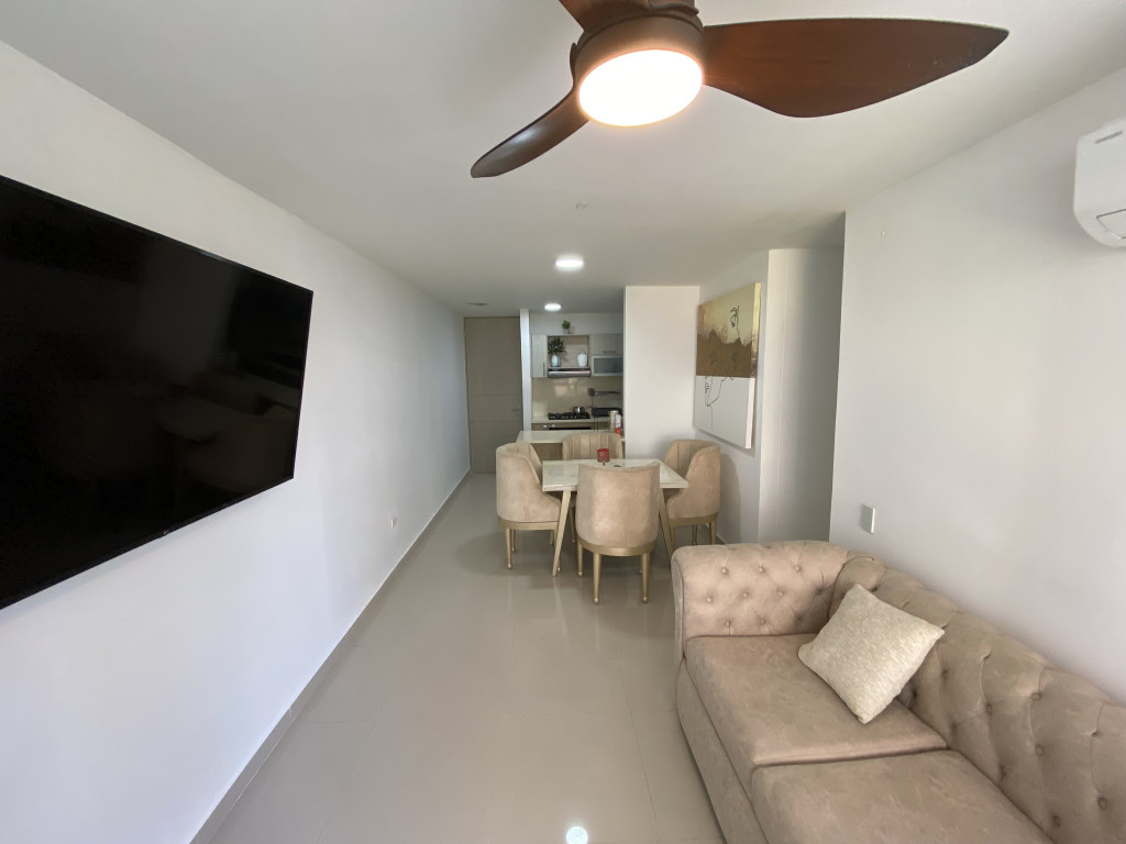 Apartamento amoblado en arriendo en la ciudad de Barranquilla, en el sector de Miramar, en edificio con vigilancia privada las 24 Horas y zonas sociales de entretenimiento piscina, canchas deportivas, salón comunal. El edificio cuenta con 11 pisos, y el apartamento se encuentra en el piso 2 con un área construida aproximada de 63.80 mt2 consta de 3 habitaciones 2 baños, sala – comedor, cocina integral, area de labores y 1 parqueadero asignado, con buena distribución en sus áreas con cómodos espacios, buenos acabados, fresco y acogedor, su entorno es tranquilo y residencial con cómodas vías de acceso, facilidad al transporte publico cercano, sobre el sector puede encontrar, colegios y centro comercial Miramar Plaza y Miramar.