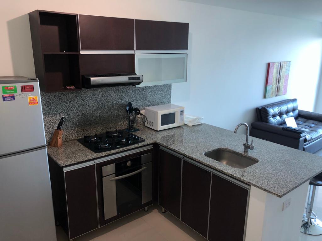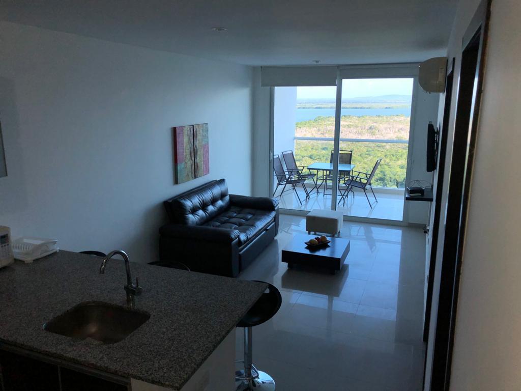 Apartamento amoblado para arriendo, ubicado en la zona norte de la ciudad de Cartagena; sector exclusivo, a pocos metros del aeropuerto, minimercados, droguerías, restaurantes de comidas típicas, cómodas vías de acceso, el edificio consta de piscinas para adultos, gimnasio, salón social para eventos, sistema cerrado de TV, vigilancia privada las 24/7, balcón con una espectacular vista hacia al mar, 1 habitaciones, 1 1/2 baños, sala, comedor, aire acondicionado, cocina integral, zona de labores, 1 parqueadero.