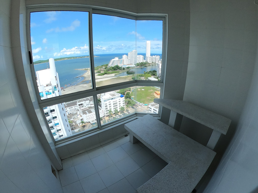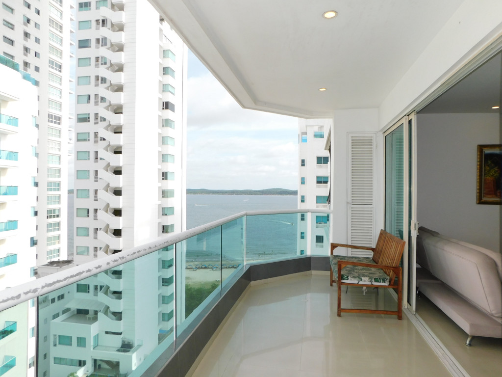 Apartamento amoblado para arriendo, ubicado en el barrio Castillogrande de Cartagena; excelente vista lateral a la bahia y la playa; ambiente familiar, la oportunidad ideal para brindarle un espacio unico y especial a tu nucleo familiar; En edificio de 19 pisos consta de 2 ascensores modernos, parqueadero cubierto, piscina, salón social para eventos, jacuzzi, baño turco, zona BBQ; el apto cuenta con balcon y vista lateral a la Bahia y la playa, ventilado, 3 habitaciones, 2 baños, sala – comedor, cocina integral abierta, zona de labores, hall de alcobas, baño social, aire acondicionado, blackouts, mobiliario moderno; a pocos pasos del sector turístico, modernos centros comerciales, salas de cine, almacenes de cadena, boutiques, joyerías, casinos, restaurantes típicos, iglesia, instituciones educativas, entidades financieras, minimercados, cómodas vías de acceso y sendero peatonal a la orilla de la bahía para realizar trotes, caminatas, montar bicicletas, patinar.