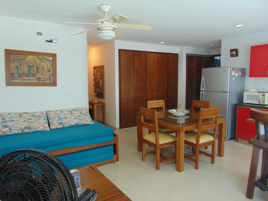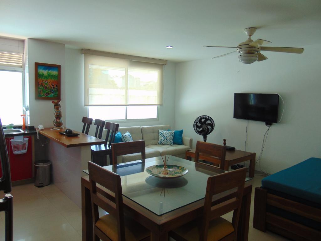 Apartamento amoblado para arriendo, ubicado en el barrio Cielo Mar-Cartagena, zona de alto crecimiento residencial, para ofrecerle bienestar y confort a tus seres queridos, cerca de reconocidas playas, restaurantes típicos, sitios para diversión y esparcimiento, minimarkets, droguerías, cadenas hoteleras, centro de convenciones, a pocos metros del aeropuerto Internacional y centro histórico; el apartamento consta sala comedor, 1 habitacion amplia y una pequeña, 2 baños, cocina integral , zona de labores, aires acondicionados, ventanas con insonorización, excelentes acabados. El edificio consta de amenidades como: piscina para adultos salón social para eventos, vigilancia privada las 24/7, circuito cerrado de TV, gabinete de incendio, sensor de movimientos, alarmas