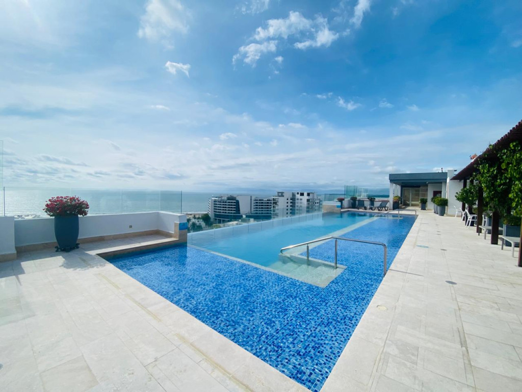 Apartamento para arriendo, ubicado en cielo mar – Cartagena; a pocos metros de la playa, restaurantes de comidas típicas, minimercados, droguerías, hoteles, a pocos minutos del aeropuerto; el edificio consta de vigilancia privada las 24/7, circuito cerrado de TV, gabinete de incendios, ascensor inteligente,1 parqueadero cubierto, piscina para adultos y niños, salón social para eventos, zona de juegos infantiles, salón de juegos, cinema, gimnasio, skybar, jacuzzis, turco; el apto consta de balcón, 3 habitaciones, 3 baños, aires acondicionados, cocina integral abierta, sala – comedor, zona de labores, cómodas vías de acceso.