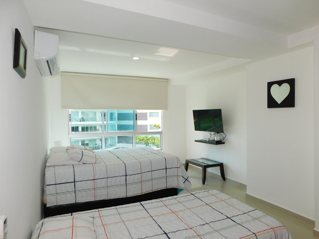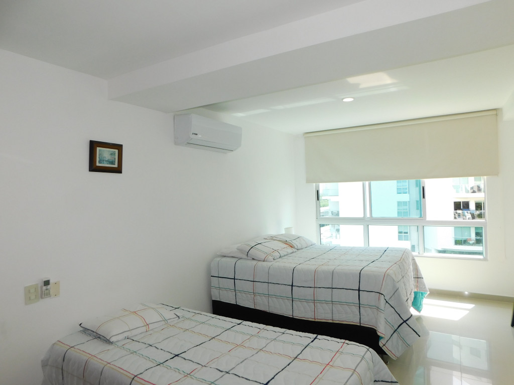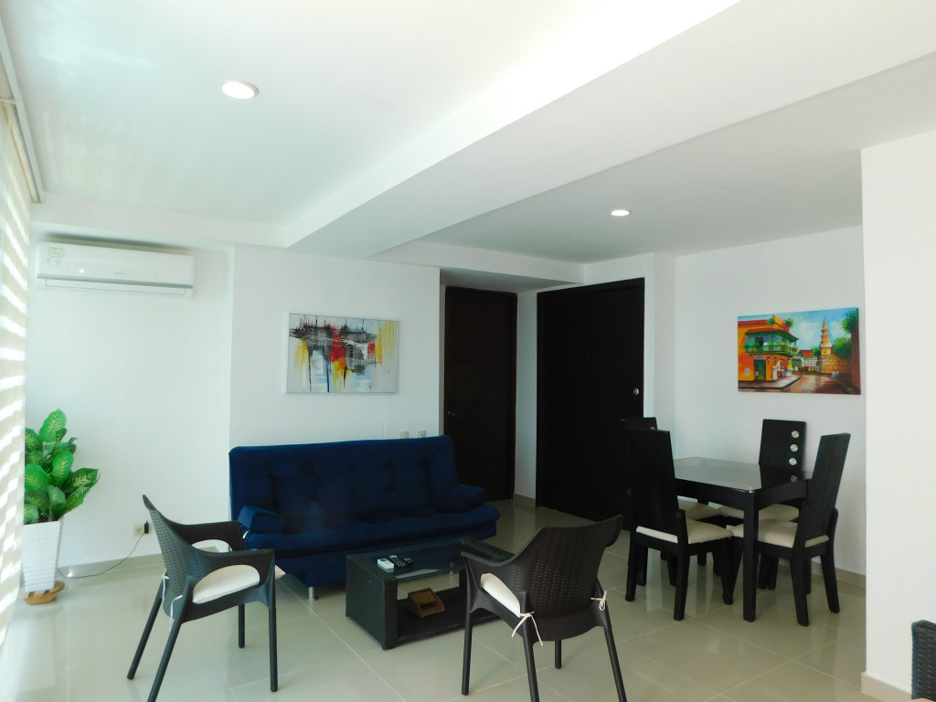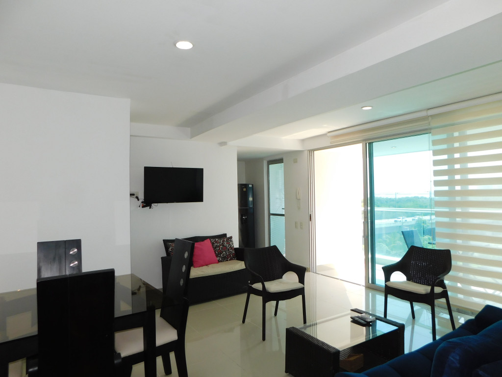 Apartamento amoblado para arriendo ubicado en la zona norte de la ciudad de Cartagena; sector exclusivo de alto crecimiento urbanistico en la nueva Cartagena, donde puedes brindarle un espacio de confort y tranquilidad a tus seres queridos; en edificio de 13 pisos, consta con salida directa al mar, multiples piscinas para adultos y niños, gimnasio dotado, jacuzzi, baño turco, sistema cerrado de TV, vigilancia privada las 24/7, parqueadero cubierto; el apto consta de balcón con vista lateral al mar y la laguna, 1 habitacion, 2 baños, sala – comedor, cocina integral, zona de labores, aire acondicionado, mobiliario moderno; a pocos metros del aeropuerto Internacional Rafael Nuñez, minimercados, droguerías, restaurantes de comidas típicas y tradicionales, bombas de gasolina, instituciones educativas, cómodas vías de acceso; este inmueble ofrece la combinación perfecta entre funcionalidad y estilo, vive la experiencia de un hogar único en este exclusivo apartamento.
