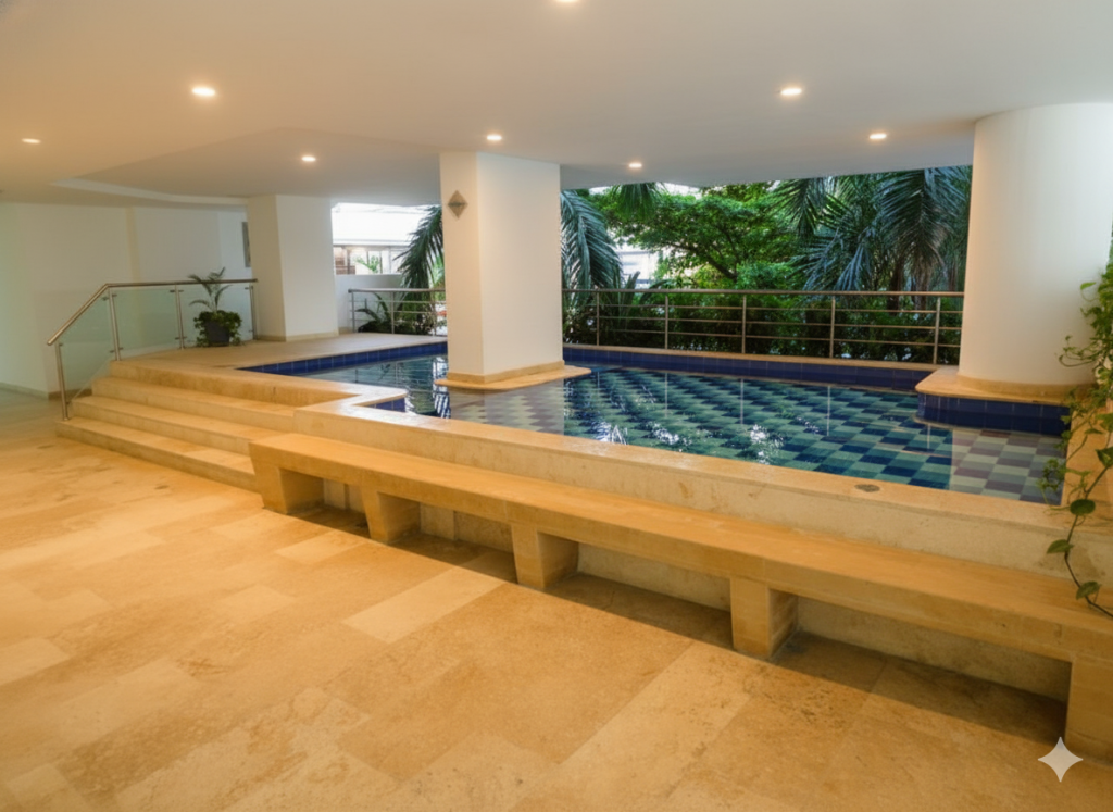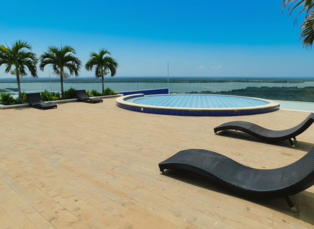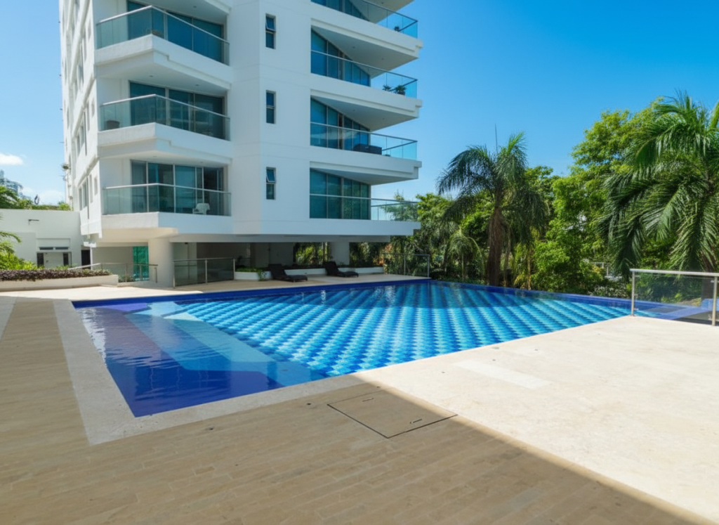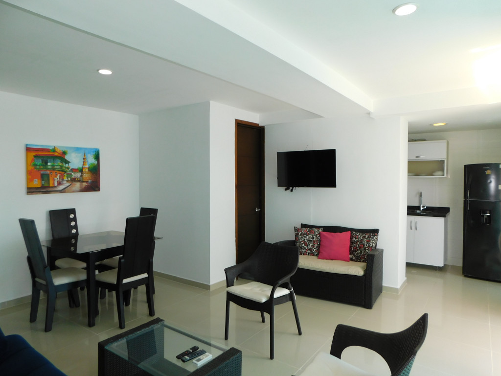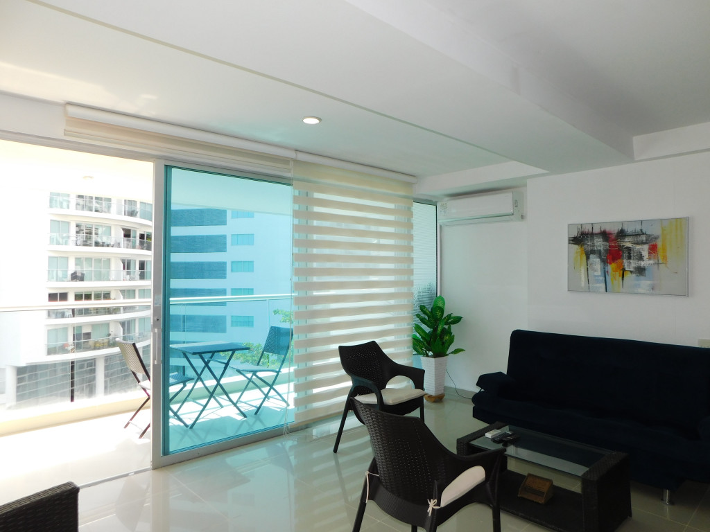 Apartamento amoblado para arriendo ubicado en la zona norte de la ciudad de Cartagena; sector exclusivo de alto crecimiento urbanistico en la nueva Cartagena, donde puedes brindarle un espacio de confort y tranquilidad a tus seres queridos; en edificio de 13 pisos, consta con salida directa al mar, multiples piscinas para adultos y niños, gimnasio dotado, jacuzzi, baño turco, sistema cerrado de TV, vigilancia privada las 24/7, parqueadero cubierto; el apto consta de balcón con vista lateral al mar y la laguna, 1 habitacion, 2 baños, sala – comedor, cocina integral, zona de labores, aire acondicionado, mobiliario moderno; a pocos metros del aeropuerto Internacional Rafael Nuñez, minimercados, droguerías, restaurantes de comidas típicas y tradicionales, bombas de gasolina, instituciones educativas, cómodas vías de acceso; este inmueble ofrece la combinación perfecta entre funcionalidad y estilo, vive la experiencia de un hogar único en este exclusivo apartamento.