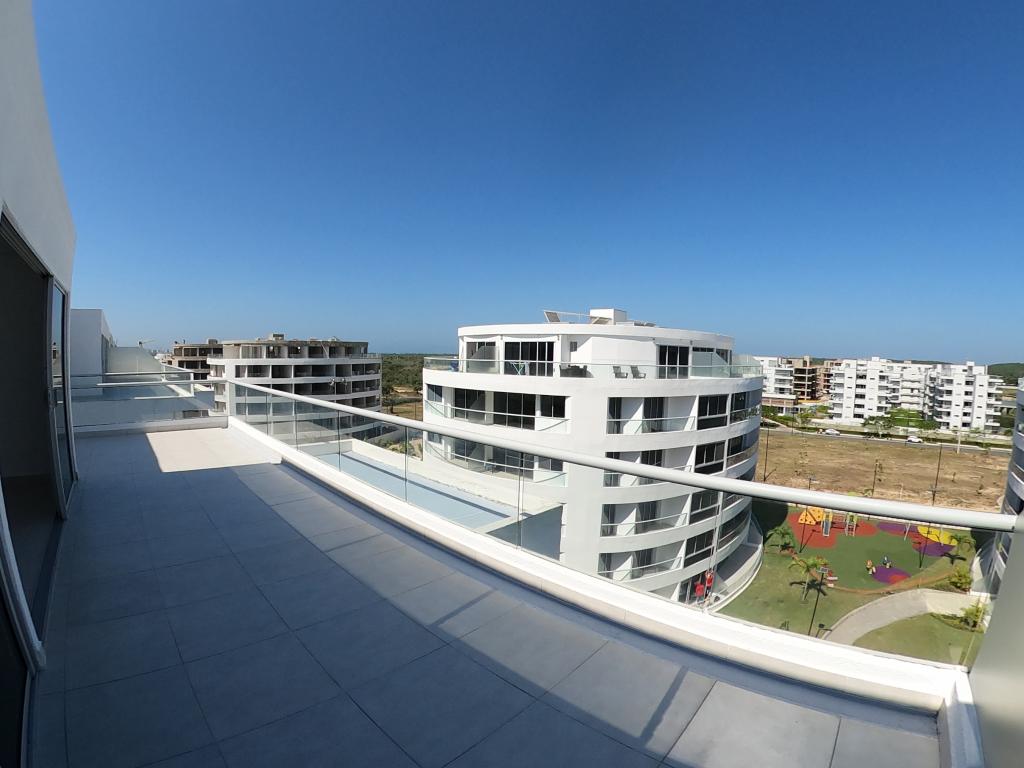 Apartamento tipo penthouse para estrenar en arriendo, ubicado en zona norte, sector exclusivo de la nueva Cartagena, cómodo, con una innovadora arquitectura, ambiente familiar, brindale la oportunidad a tu familia de vivir la experiencia de confort, donde puedan comenzar a escribir un nuevo inicio; en edificio de 6 pisos, cuenta con senderos peatonales, multiples piscinas para adultos y niños, salón social para eventos, zona de juegos infantiles, gimnasio, zona BBQ, zonas verdes, lobby, parqueadero cubierto, vigilancia privada las 24/7, parqueadero de visitantes, sistema cerrado de tv, sensor de movimiento, alarma y gabinete contra incendios; el apartamento consta de amplio balcón tipo terraza, 2 habitaciones, 2 baños, sala – comedor, cocina integral abierta, zona de labores; a pocos pasos del Centro Hospitalario Serena del Mar, universidad de los andes, almacenes de cadena, droguerías, restaurantes en el sector de Ramblas, zonas hoteleras, cómodas vías de acceso.