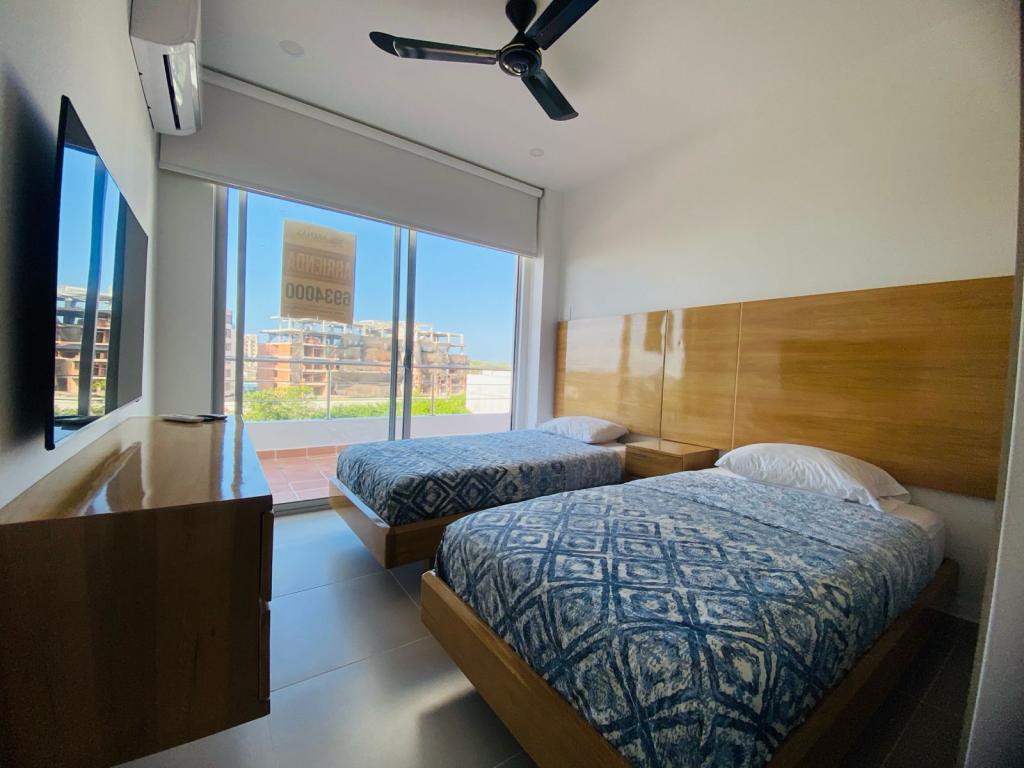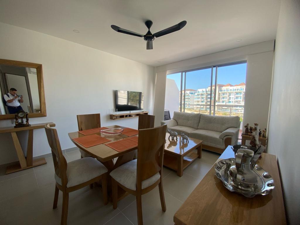 Apartamento en arriendo amoblado para estrenar, ubicado en la zona norte de Cartagena; el condominio campestre consta de vigilancia privada las 24 Horas y zonas sociales de entretenimiento, (piscina, jacuzzi, bar, zona BBQ, Gimnasio, Zonas verdes, senderos peatonales, canchas deportivas, juegos infantiles) El apartamento consta de 90 metros cuadrados, distribuidos en 2 habitaciones, 2 baños, cocina integral equipada, zona de labores, balcón, parqueadero. Buena distribución en sus áreas con buenos y modernos acabados, es fresco y acogedor, su entorno es tranquilo. A pocos minutos de las playas de manzanillo, droguerías, almacenes de cadena, hoteles, centro histórico y turístico de la ciudad. Cómodas vías de acceso.