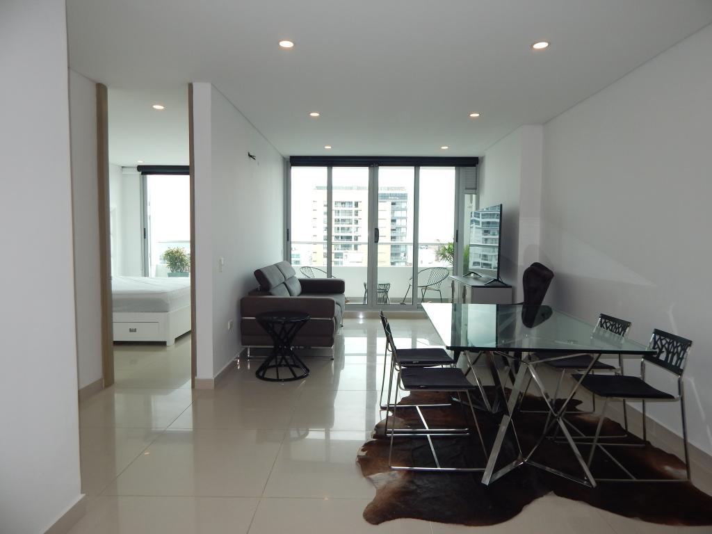 Se vende apartamento ubicado en Barranquilla sector de alto prado en edificio con vigilancia privada y zonas sociales de entretenimiento, el edificio cuenta con 23 pisos y el apartamento se encuentra en piso 15 con un área de 73.59 mt2 y consta de 1 habitación, 1 baño mas el baño social, un parqueadero asignado y deposito, buena distribución en sus áreas con buenos y modernos acabados, es fresco y acogedor, con una gran vista panorámica desde su balcón, gran iluminación natural, su entorno es comercial, con cómodas vías de acceso y facilidad al transporte publico cercano, sobre el sector puede encontrar restaurantes, bancos, supermercados e iglesias cercanas.