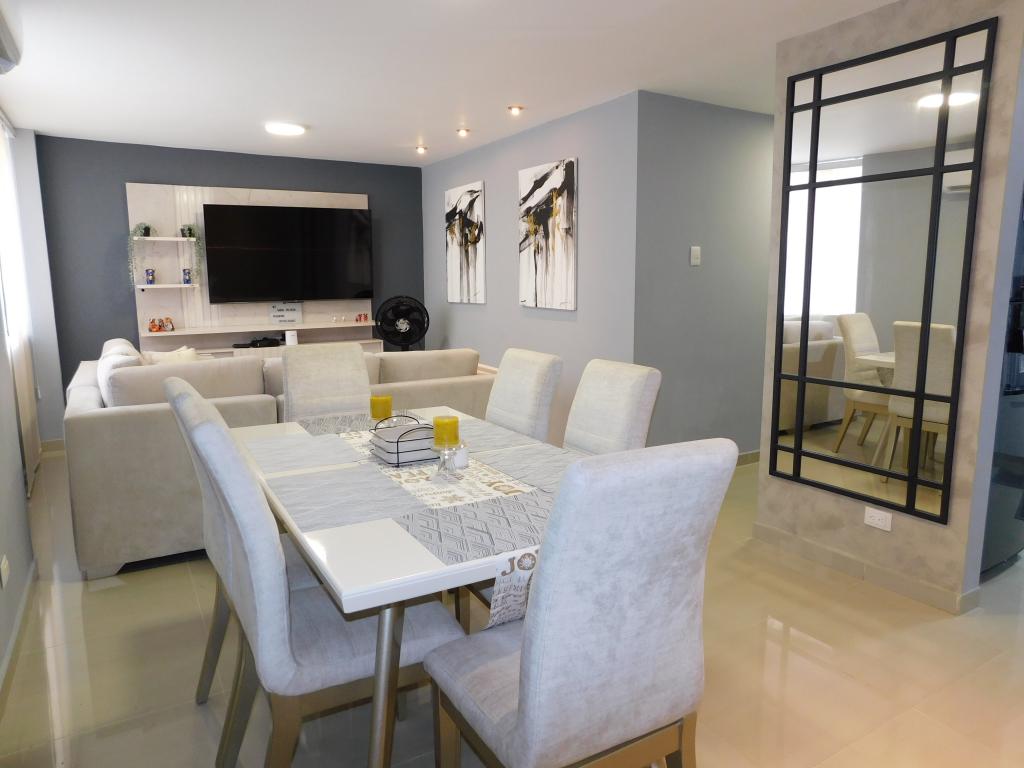 Apartamento en venta en la ciudad de Barranquilla ubicado en el barrio altos de Riomar, en un edificio con vigilancia privada las 24 Horas y zonas sociales de entretenimiento, el edificio cuenta con 4 pisos, el apartamento se encuentra ubicado en el piso 3, con un área aproximada de 73 mt2, distribuidos en 2 habitaciones, 2 baños, la habitación principal cuenta con baño interno, sala-comedor, cocina integral y 1 parqueadero asignado, lado sombra, buena distribución en sus áreas con buenos y modernos acabados, es fresco y acogedor, su entorno es tranquilo, residencial con cómodas vías de acceso y facilidad al transporte publico cercano, sobre el sector puede encontrar, parques, colegios, supermercados y cerca al centro comercial Buenavista.
