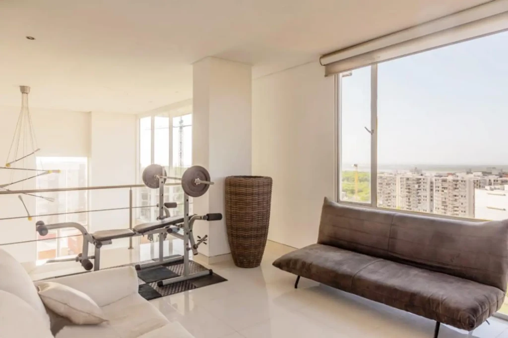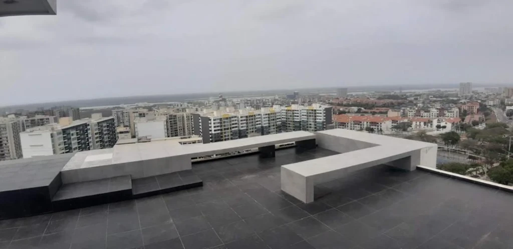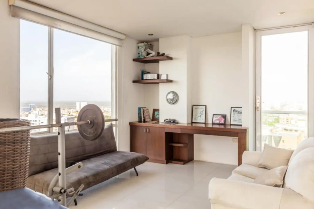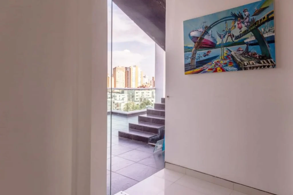 Apartamento en venta ubicado en altos de Riomar de la ciudad de Barranquilla. Cuenta con un área de 187.53 metros cubiertos + 200 m2 de terraza. Son tres niveles con entrada directa al segundo piso en el ascensor, doble altura de lujo con una alcoba suite mas estudio de grabación que se puede adaptar para una segunda habitación. Además, cuenta con amplios espacios y buena distribución de sus areas, buenos y modernos acabados. Este inmueble se destaca por poseer una gran iluminación natural y por ser fresco. Ubicado en edificio con vigilancia privada, 1 parqueadero. Cerca al Buenavista y plaza del parque