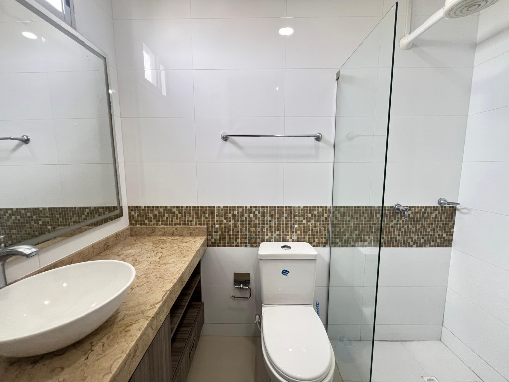 Apartamento en venta Barranquilla sector ciudad jardín, en edificio con vigilancia privada las 24 Horas. El edificio cuenta con 10 pisos y el apartamento se encuentra en el piso 7, con un área aproximada de 94 mt2 y consta de sala comedor, 3 amplias habitaciones, la habitación principal cuenta con baño independiente y balcón, baño social, cocina equipada estudio, dos aires y baño auxiliar buena distribución en sus áreas con amplios y cómodos espacios, buena distribución en sus áreas con buenos y lujosos acabados, fresco y acogedor, su entorno es tranquilo, con una excelente vista desde la sala de eventos en el decimo piso, residencial con cómodas vías de acceso y facilidad al transporte publico cercano, sobre el sector puede encontrar, parques, colegios, restaurantes y droguerías cercanas.