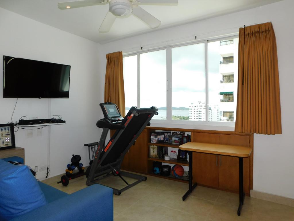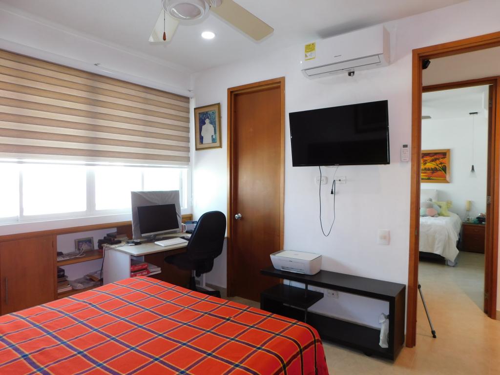 Apartamento para la venta ubicado en el barrio Bocagrande de Cartagena; ambiente familiar, la oportunidad ideal para brindarle un espacio único y especial a tu seres queridos; nuestra propuesta residencial se encuentra en un edificio de 16 pisos con 2 ascensores, piscina, salón social para eventos, vigilancia las 24/7, circuito cerrado de TV, parqueadero cubierto, lobby; el apto consta de amplio balcón estilo terraza y vista externa hacia la playa – Tierrabomba, 3 habitaciones, 3 baños, sala – comedor, walking closet, cocina integral abierta en U, zona de labores, alcoba y baño de servicio, ventilado, multiples aires acondicionados, deposito; a pocos metros de la playa y la bahía, cerca a reconocidos centros comerciales, modernas salas de cine, restaurantes tradicionales y de comidas típicas, boutiques, droguerías, iglesia, bombas de gasolina, instituciones financieras y medicas, a pocos minutos del centro histórico, cómodas vías de acceso, transporte publico cercano.