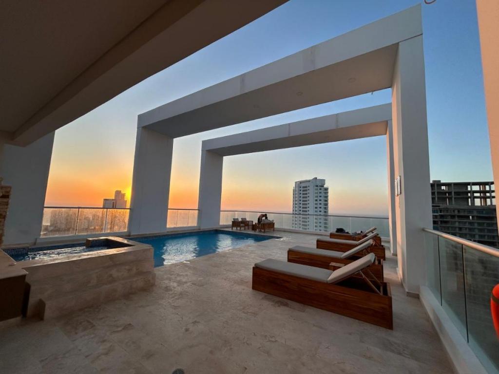 Apartamento duplex tipo loft para estrenar en venta, ubicado en el barrio Bocagrande de Cartagena; sector exclusivo y de alta demanda hotelera, ideal para arriendo turístico, AIRBNB, Booking, entre otros portales de renta turística; en un edificio de 17 pisos con 34 niveles consta de 2 ascensores, 2 piscinas (adultos y niños), salón social para eventos, gimnasio dotado, zona BBQ, bussines center, vigilancia privada las 24/7, circuito cerrado de TV; el apto consta de 2 balcones con vista externa hacia la Bahia de Cartagena, 1 habitación, 2 baños, sala – comedor, cocina integral abierta; a pocos metros de la playa y la bahía, cerca a reconocidos centros comerciales, modernas salas de cine, restaurantes tradicionales y de comidas típicas, boutiques, droguerías, iglesia, bombas de gasolina, instituciones financieras y medicas, a pocos minutos del centro histórico, cómodas vías de acceso, transporte publico cercano.