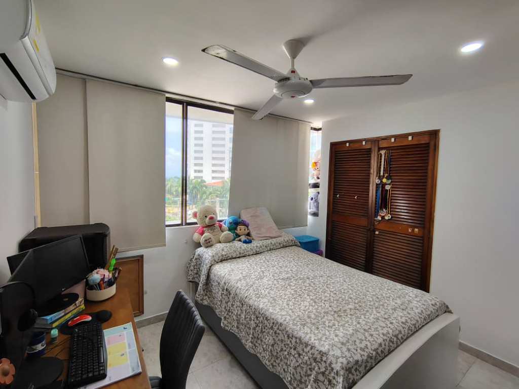 Apartamento para v venta, ubicado en el barrio Bocagrande – Cartagena; disfruta de un ambiente acogedor, la oportunidad perfecta para vivir o descansar en un espacio cómodo, funcional y exclusivo, ideal para quienes buscan tranquilidad y cercanía con el mar. En edificio de 12 pisos, consta de ascensores, vigilancia 24/7, circuito cerrado de TV y salón social para eventos. El apartamento cuenta con balcón con vista externa, 3 habitaciones, 2 baños, amplia sala-comedor, cuarto y baño de servicio, cocina integral cerrada, zona de labores y parqueadero cubierto privado. excelente iluminación y ventilación. A pocos pasos de la playa y rodeado del vibrante sector comercial de Bocagrande, con modernos centros comerciales, restaurantes típicos, iglesia, instituciones educativas, entidades financieras y minimercados.