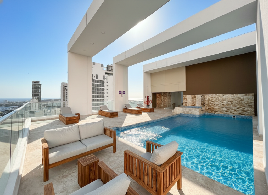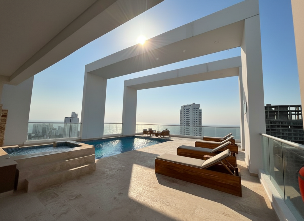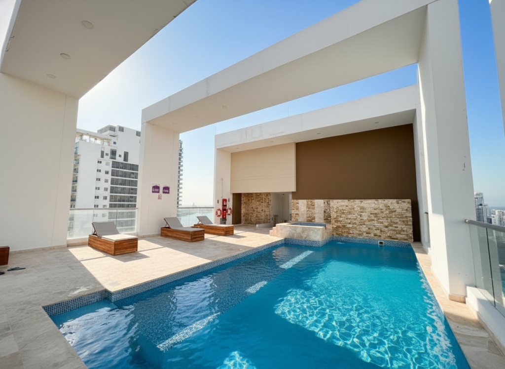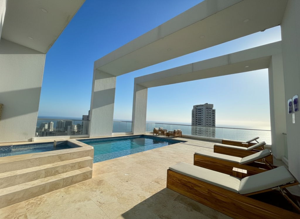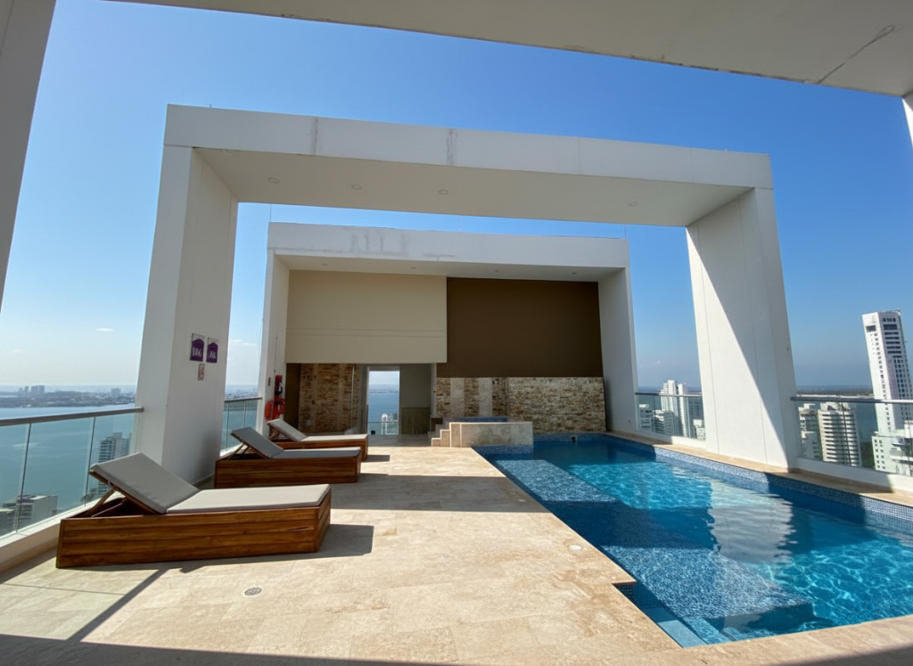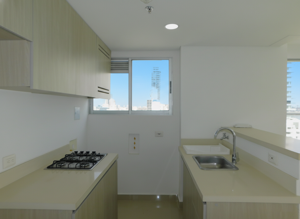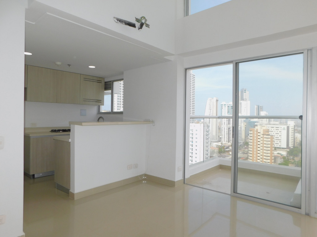 Apartamento duplex tipo loft para estrenar en venta, ubicado en el barrio Bocagrande de Cartagena; sector exclusivo y de alta demanda hotelera, ideal para arriendo turístico, AIRBNB, Booking, entre otros portales de renta turística; en un edificio de 17 pisos con 34 niveles consta de 2 ascensores, 2 piscinas (adultos y niños), salón social para eventos, gimnasio dotado, zona BBQ, bussines center, vigilancia privada las 24/7, circuito cerrado de TV; el apto consta de 2 balcones con vista externa hacia la Bahia de Cartagena, 1 habitación, 2 baños, sala – comedor, cocina integral abierta; a pocos metros de la playa y la bahía, cerca a reconocidos centros comerciales, modernas salas de cine, restaurantes tradicionales y de comidas típicas, boutiques, droguerías, iglesia, bombas de gasolina, instituciones financieras y medicas, a pocos minutos del centro histórico, cómodas vías de acceso, transporte publico cercano.