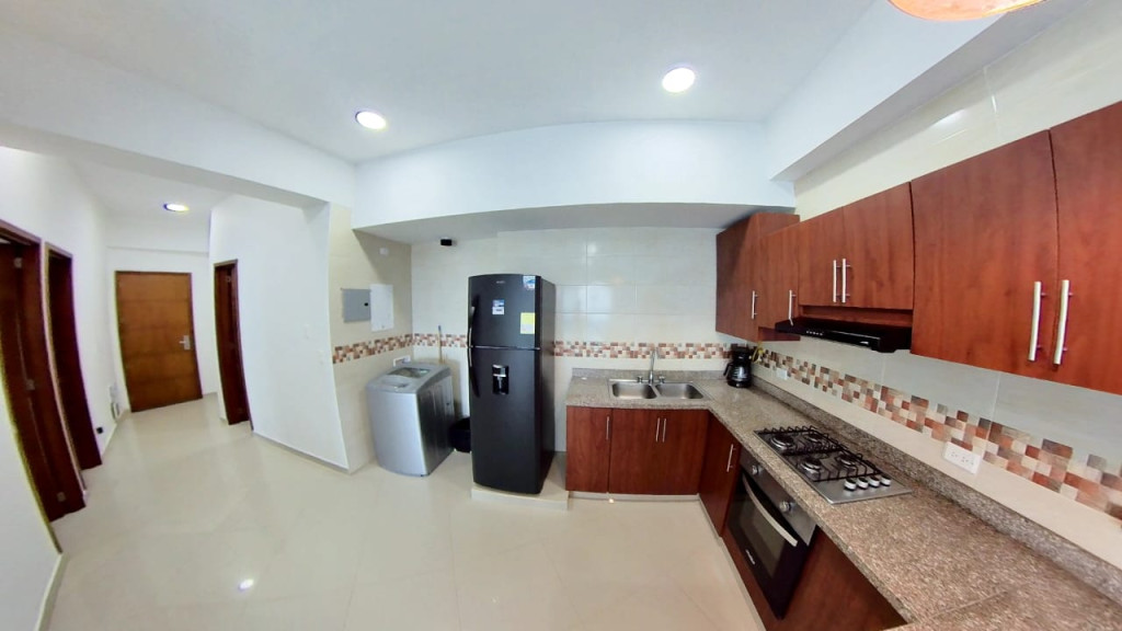Descubre este elegante y moderno apartamento ubicado en una exclusiva zona residencial de la ciudad, ideal para vivir o invertir, con 83 m² perfectamente distribuidos en 2 habitaciones con clóset, 1 baño, sala-comedor iluminada, cocina integral y zona de ropas independiente; disfruta de una agradable vista exterior desde su balcón, aire acondicionado y la tranquilidad que ofrece la vigilancia privada 24/7, además de completas amenidades como piscina, gimnasio y salas de reuniones comunales, todo en una ubicación estratégica con fácil acceso a supermercados, parques y transporte público, lo que lo convierte en una excelente oportunidad de alta rentabilidad para Airbnb o vivienda propia.