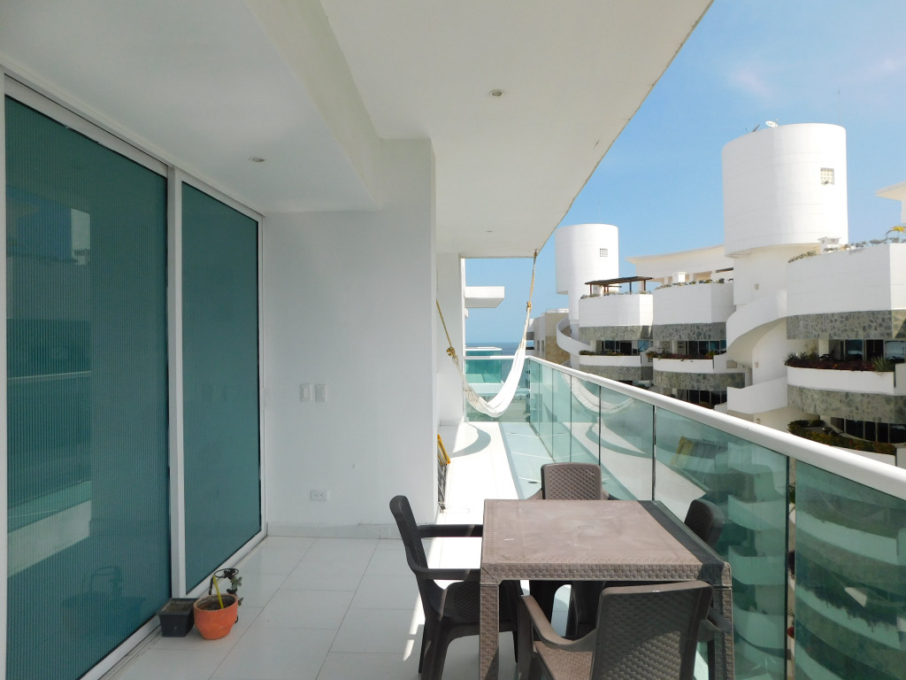 Apartamento para la venta, estilo resort, ubicado en la zona norte de la ciudad de Cartagena; sector exclusivo y de alta demanda hotelera; ideal para inversionistas, lo puedes promocionar por Airbnb, booking y demás portales de renta turística; en edificio de 7 pisos con salida directa hacia el mar, consta de multiples piscinas para adultos y niños, gimnasio moderno – dotado, salón social para eventos, zona de juegos infantiles, sistema cerrado de TV, vigilancia privada las 24/7, parqueadero cubierto, multiples ascensores, gabinete de incendios, sensor de movimiento, lobby, planta electrica; el apto consta de amplio balcon con vista hacia a la laguna, 3 habitaciones, 2 baños, closets, sala – comedor, cocina integral abierta, zona de labores; a pocos metros del aeropuerto internacional Rafael Nuñez, minimercados, droguerías, restaurantes de comidas típicas y tradicionales, cómodas vías de acceso.
