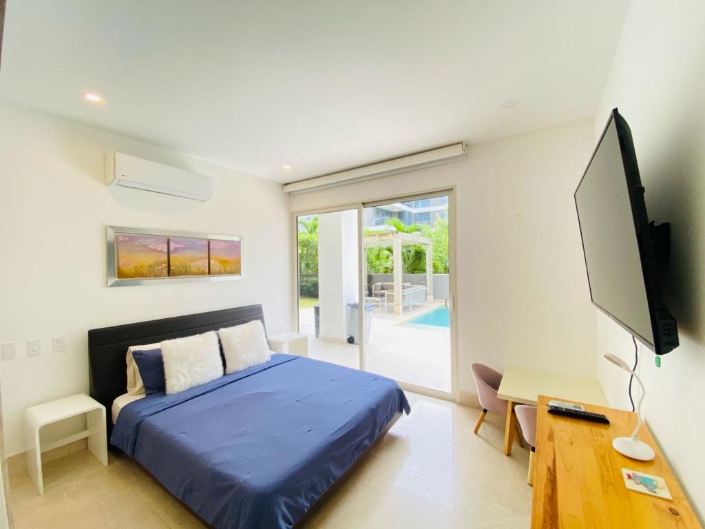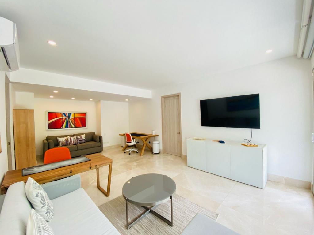 Apartamento para venta, ubicado en zona norte, sector exclusivo de la nueva Cartagena, cómodo, ambiente familiar, brindale la oportunidad a tu familia de vivir la experiencia de confort, donde puedan comenzar a escribir un nuevo inicio o para inversion; a pocos minutos de almacenes de cadena, droguerías, restaurantes en el sector de Ramblas, zonas hoteleras, cómodas vías de acceso; el edificio cuenta con acceso directo a la playa, piscinas para adultos y niños, multiples jacuzzis, sauna, gimnasio moderno y dotado, senderos peatonales, salón social para eventos, zona de juegos infantiles, lobby, parqueadero cubierto, vigilancia privada las 24/7, sistema cerrado de tv, sensor de movimiento, alarma y gabinete contra incendios, zonas verdes; el apartamento consta de amplio balcón , 3 habitaciones, 4 baños, sala – comedor, cocina integral abierta, baño social, zona de labores, aire acondicionado,1 garaje