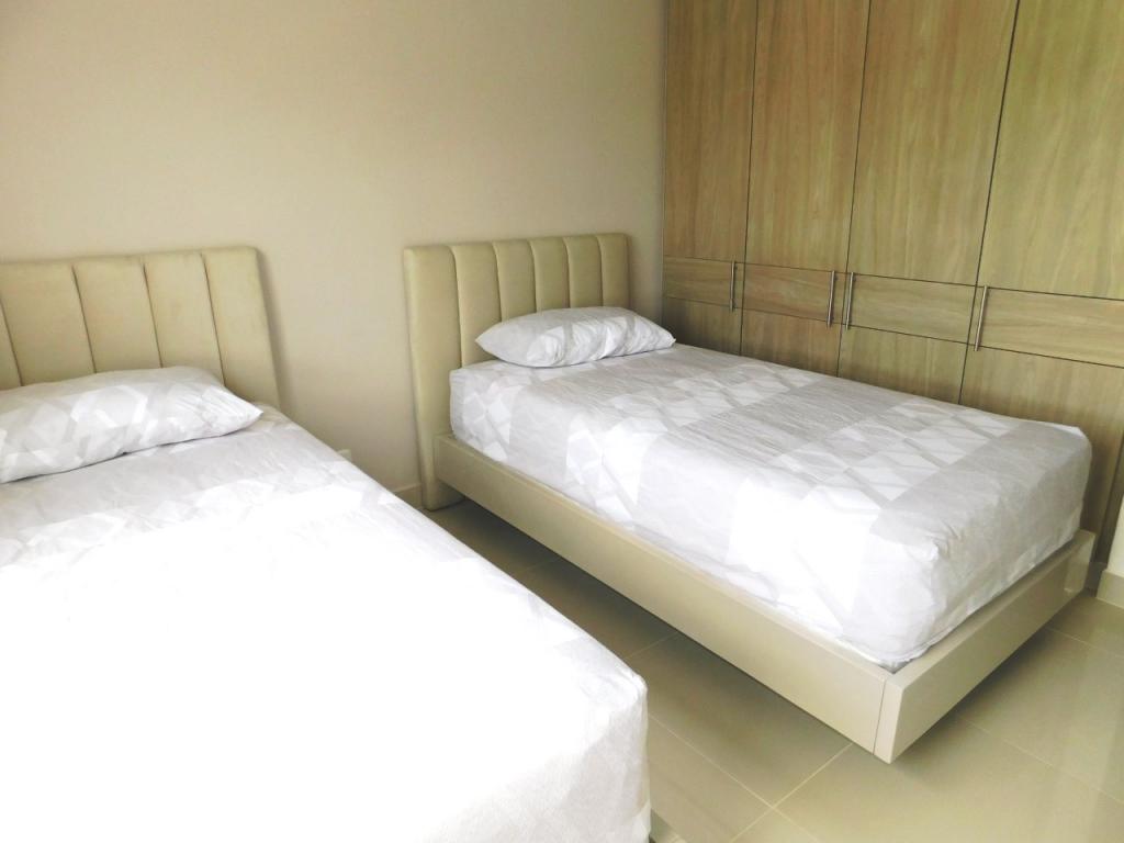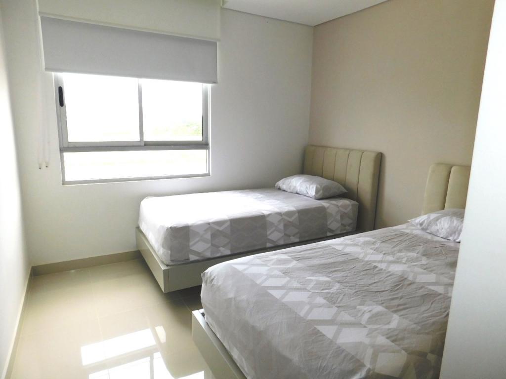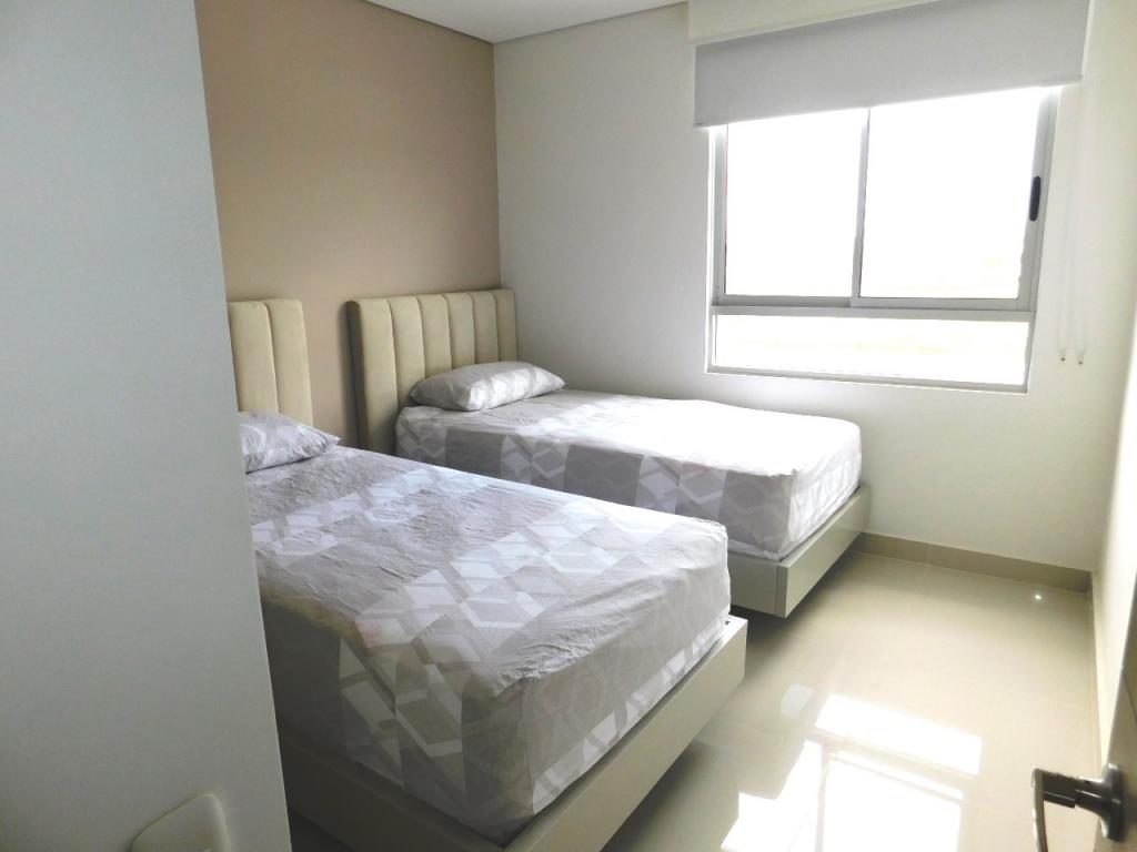 Apartamento en venta ubicado en el sector de Serena Del Mar al norte de la Ciudad de Cartagena, Uno de los sitios más tranquilos, cómodos y seguros de la ciudad, de facil acceso y transporte, cerca del centro hospitalario fundación Santa Fe de Bogota y del edificio de Administración de Los Andes. El apto cuenta con 103.17 m2, es lado sombra, excelentes acabados y espectacular vista al canal; acceso con clave, sala comedor, balcón, estudio, baño social, 3 grandes alcobas, balcon en una de las alcobas, 1 vestier, baño privado y auxiliar, cocina integral tipo americano, área de labores, alcoba y baño para el servicio y garaje doble privado. El conjunto consta de amplias zonas sociales y recreativas, lobby, piscinas, jacuzzi, canchas deportivas, salón de juegos, gimnasio, salón social para eventos, juegos infantiles, turco, sauna, jacuzzi, zona BBQ, senderos peatonales, zonas verdes, laguna, vigilancia privada las 24/7 y sistema cerrado de TV.