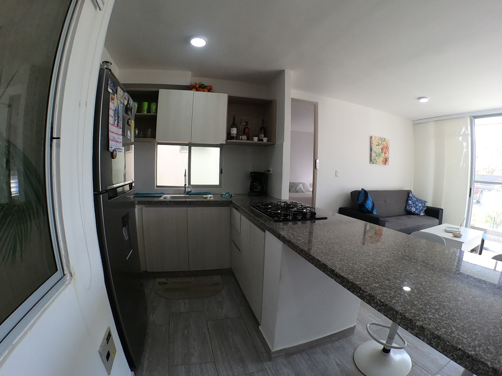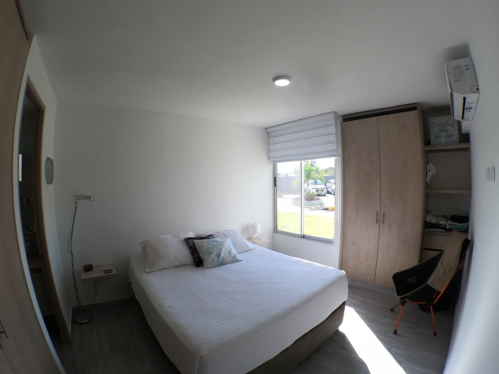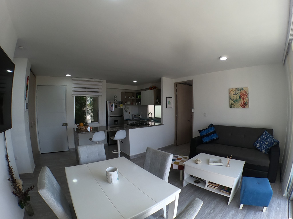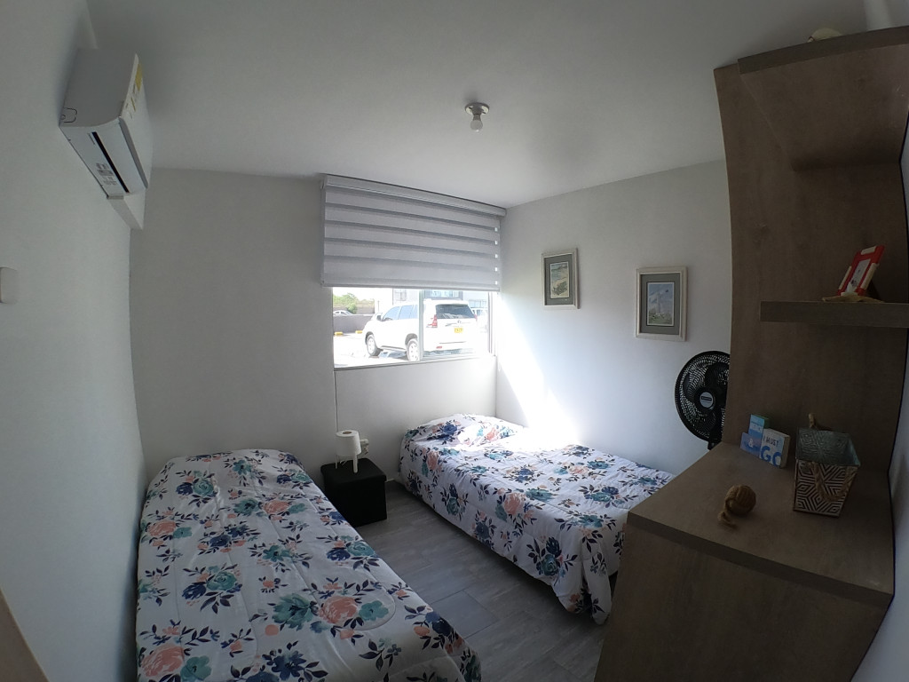 Apartamento en amoblado en venta ubicado en la zona norte de la ciudad de Cartagena, en conjunto residencial con torres de 3 pisos, piscina para adultos y niños, salón social para eventos, zonas verdes, zona de juegos infantiles, vigilancia privada, parqueadero, sistema cerrado TV; El apartamento consta de balcón, sala/comedor con excelente iluminación natural, cocina integral abierta, 2 habitaciones, 2 baños con divisiones en vidrio y excelentes acabados, todo completamente amoblado, Sector exclusivo de la ciudad, cercano a prestigiosa zona comercial, con droguerías, locales de moda, a pocos minutos de playas, aeropuerto y centro histórico de la ciudad.