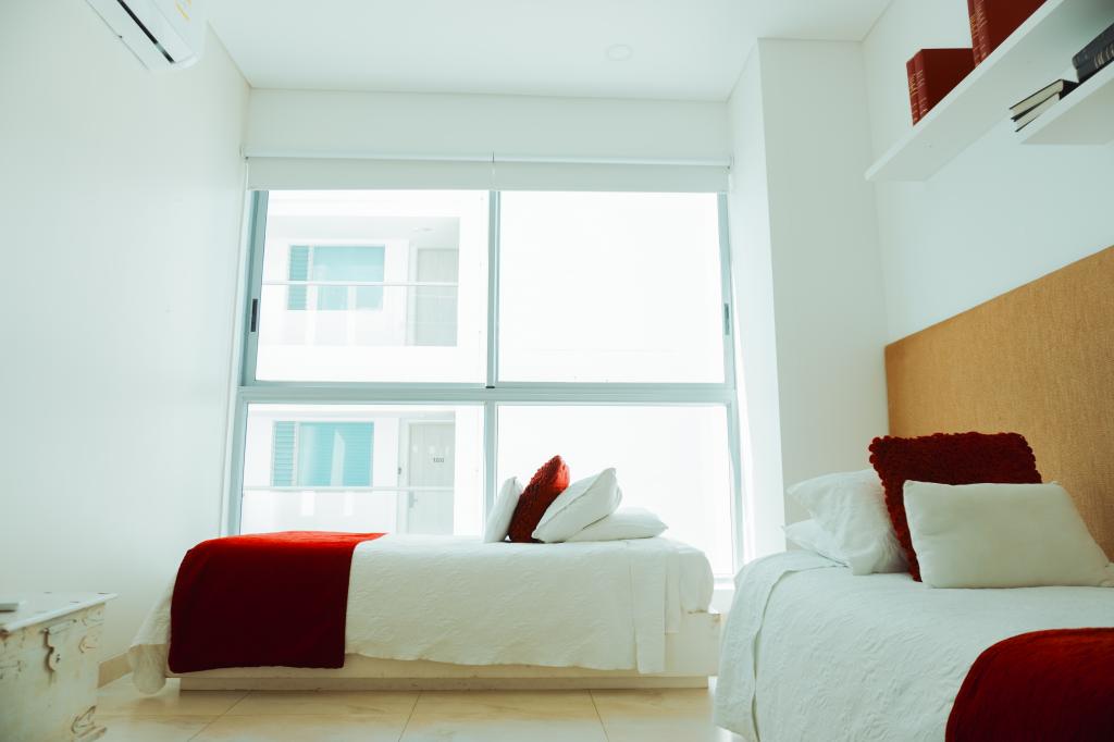 Apartamento de lujo para la venta, tipo hotel, amoblado; ubicado en la zona norte de Cartagena, sector exclusivo y de alta demanda hotelera; ideal para inversionistas, lo puedes promocionar por Airbnb, booking y demás portales de renta turística, en edificio de 13 pisos, acceso directo a la playa, cuenta con amenidades de un resort como welcome desk, múltiples piscinas para adultos y niños, spa, zonas verdes, cancha de tenis, gimnasio, restaurantes, coworking, lobby bar, salones de eventos, vigilancia privada, parqueaderos cubiertos, sistema cerrado TV; El apartamento consta de balcón, sala – comedor con excelente iluminación natural, cocina integral ,4 habitaciones, 3 baños con divisiones en vidrio y excelentes acabados, mobiliario moderno,cuarto y baño de servicio, cercano a prestigiosa zona comercial, con droguerías, locales de moda, a pocos minutos del aeropuerto y centro histórico de la ciudad.