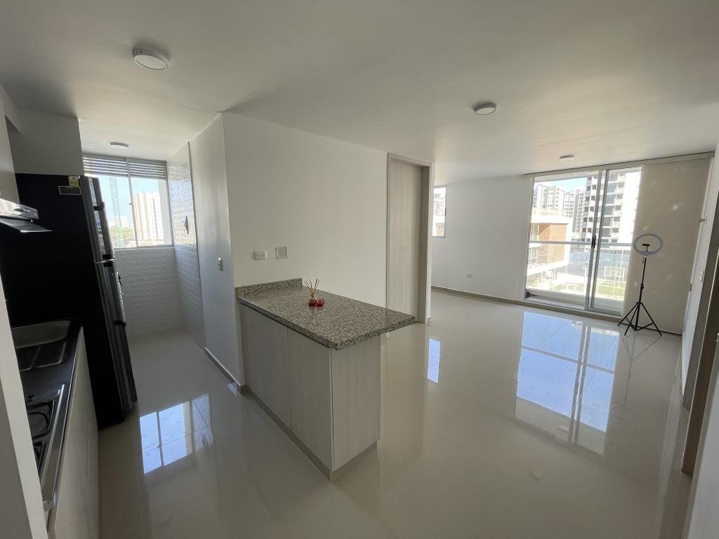 Apartamento en venta, ubicado en el sector de Ciudad de Mallorquín, al norte de la Ciudad de Barranquilla, cerca de la Ciénaga de Mallorquín, en un edificio con vigilancia privada las 24 Horas y zonas sociales de entretenimiento, piscina, zona infantil, salón comunal, el edificio cuenta con 12 pisos, el apartamento se encuentra ubicado en el piso 4, con un área aproximada de 60 mt2, distribuidos en 2 habitaciones, 2 baños, la habitación principal cuenta con baño interno, sala-comedor, cocina semi integral y zona de labores, buena distribución en sus áreas con buenos y modernos acabados, es fresco y acogedor, su entorno es tranquilo, residencial con cómodas vías de acceso y facilidad al transporte publico cercano, sobre el sector puede encontrar, parques, colegios, universidades, supermercados, clínicas y centro comercial.