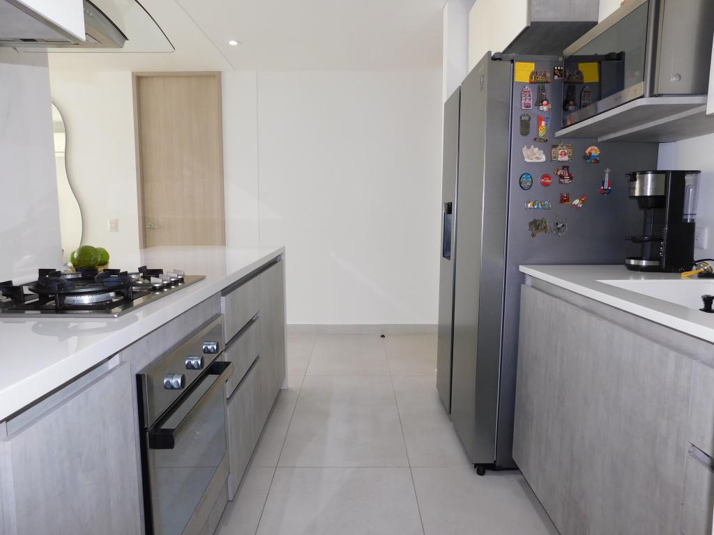 Apartamento amoblado venta al norte de la ciudad de Barranquilla ubicado en el barrio Portal de Genovés, en un edificio con vigilancia privada las 24 Horas y zonas sociales de entretenimiento piscina, zona infantil, salón comunal, el edificio cuenta con 20 pisos y el apartamento se encuentra ubicado en piso 15, con un área aproximada de 62.51 mt2, distribuidos en 2 habitaciones, 2 baños, sala-comedor, cocina integral, zona de labores y 2 parqueaderos asignados, el apartamento se destaca por su buena distribución en sus áreas con buenos y modernos acabados, es fresco y acogedor, su entorno es tranquilo, residencial con cómodas vías de acceso y facilidad al transporte publico cercano, sobre el sector puede encontrar, colegios, centro comercial, universidades y clínicas cercanas.