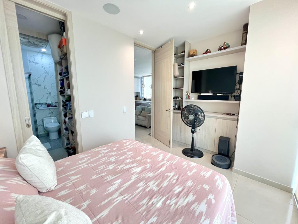 Apartamento en venta en el sector de Puerto Colombia, ubicado en el barrio Portal de Genovés, en un edificio con vigilancia privada las 24 Horas y zonas sociales de entretenimiento, piscina, zona infantil, sauna y/o baño turco y salón comunal, el edificio cuenta con 17 pisos y el apartamento se encuentra ubicado en el piso 15, con un área aproximada de 73 mt2 , distribuidos en 2 habitaciones, 2 baños, la habitación principal cuenta con baño interno, sala-comedor, cocina integral, zona de labores y 2 parqueaderos asignados, buena distribución en sus áreas con buenos y modernos acabados, es fresco y acogedor, su entorno es tranquilo, residencial con cómodas vías de acceso y facilidad al transporte publico cercano, sobre el sector puede encontrar, clínica porto azul, bomba de gasolina y el colegio sagrado corazón.