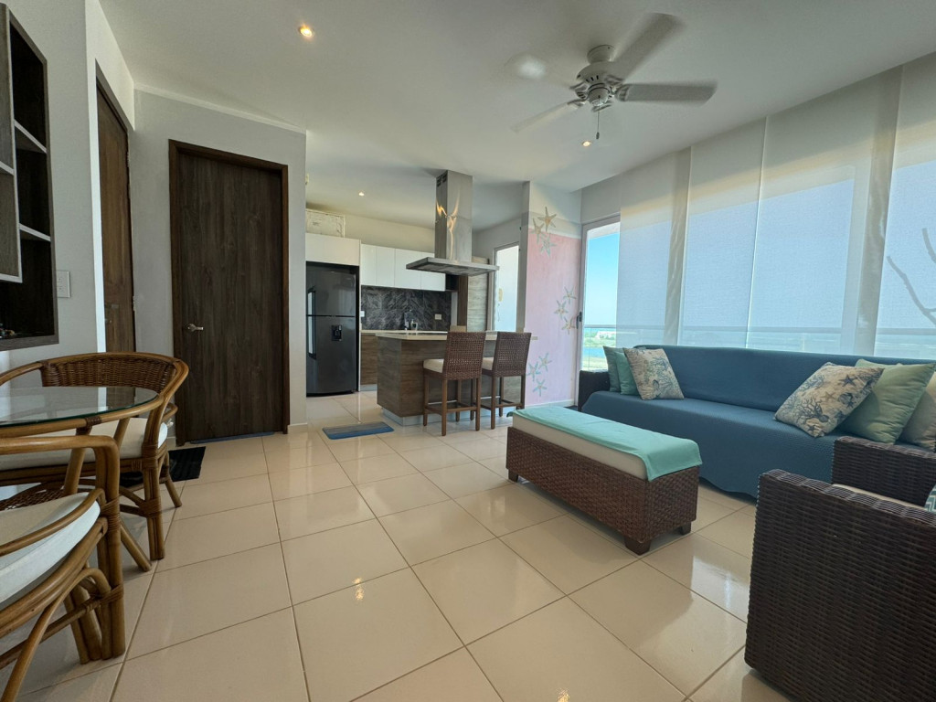 Apartamento en venta ubicado en Puerto Velero, en un edificio con vigilancia privada las 24 Horas y zonas sociales de entretenimiento, piscina, restaurante frente al mar, el edificio cuenta con 4 pisos y el apartamento se encuentra en el piso 3, con un área aproximada de 71 mt2 , distribuidos en 1 habitación, 2 baños, sala-comedor, cocina tipo americano y zona de labores buena distribución en sus áreas con buenos y modernos acabados, es fresco y acogedor, su entorno es tranquilo, residencial con cómodas vías de acceso y facilidad al transporte publico cercano, sobre el sector puede encontrar, restaurante rosi mar.