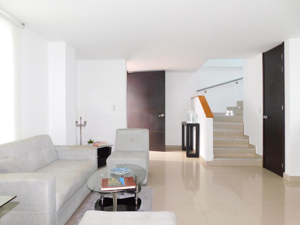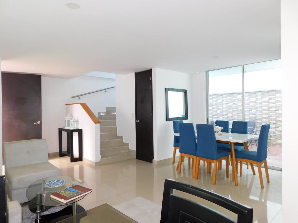 Casa conjunto de 2 niveles en arriendo, ubicada estratégicamente en el sector de Ciudad Jardín al norte de la Ciudad de Barranquilla, sector tranquilo, de fácil acceso y transporte. Cerca de la Universidad Metropolitana, parque sagrado corazón, colegios, iglesias y almacenes de cadena; la casa tiene 127 m2, esta como nueva y excelentes acabados. En el primer nivel cuenta con área de recibo, sala comedor, estar, baño social, una gran terraza, patio labores y cocina integral, en el segundo nivel tiene 3 alcobas con amplios ventanales de piso techo tipo mirador, closet, 1 vestier, 2 de las alcobas con baño privado y hay 1 baño auxiliar; la casa cuenta con garaje para 2 vehículos. El conjunto, tiene vigilancia 24 horas, acogedoras zonas sociales, salon social, gym, parque infantil, zona de BBQ y terraza social.